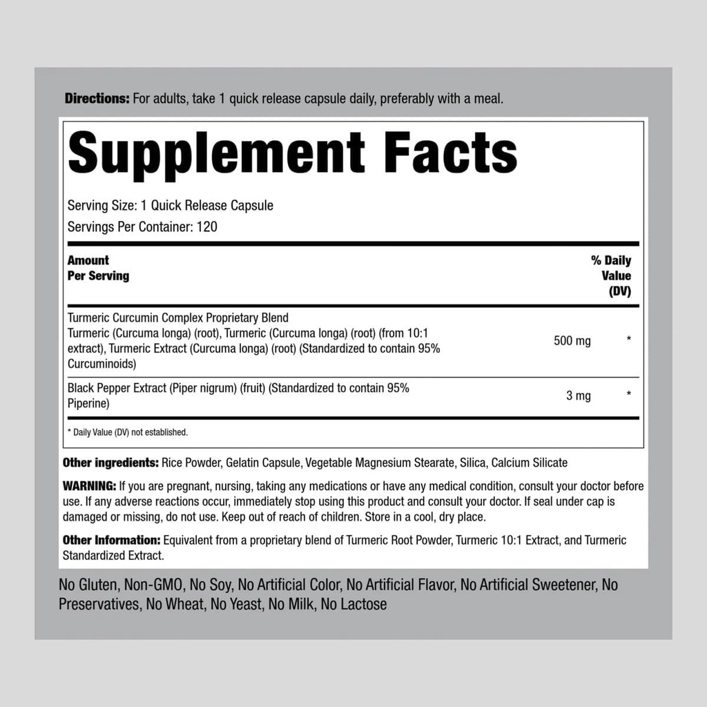 Piping Rock Turmeric Curcumin Complex 500mg 120 Quick Release Capsules