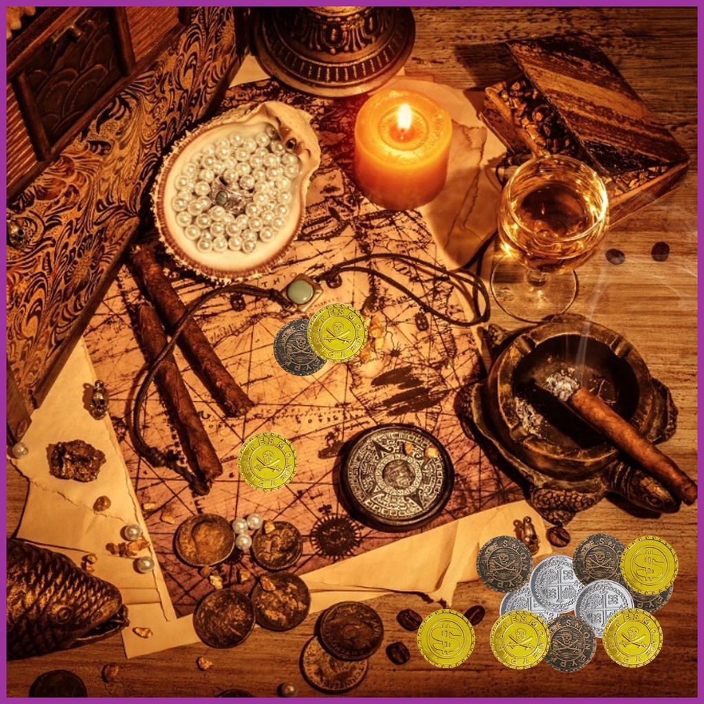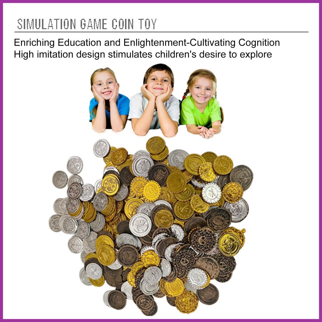 Pirate Treasure Hunt Coins Toys 100Pcs Kids Treasure Hunt Coins Metal Colored Fake Coin Toys Buried Treasure for yunkmy