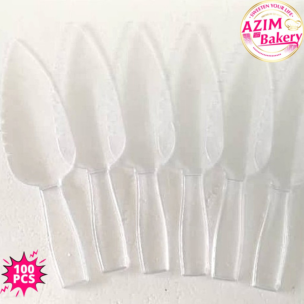 Pisau Kek Plastik Daun (100Pcs) Plastic Cake Knife Leaf | Pisau Potong Kek | Transparent Plastic Cake Knife