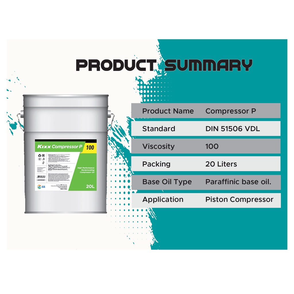 Piston Compressor Oil VG 100 - KIXX COMPRESSOR P 100 (20 LITERS)