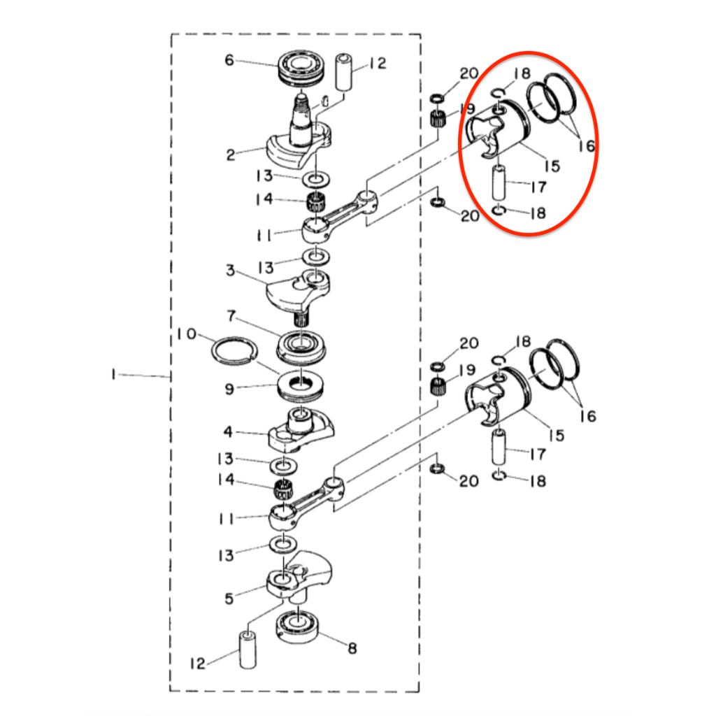 Piston Kit (3 Sizes) E40J Yamaha Outboard - 6F5-11631-00
