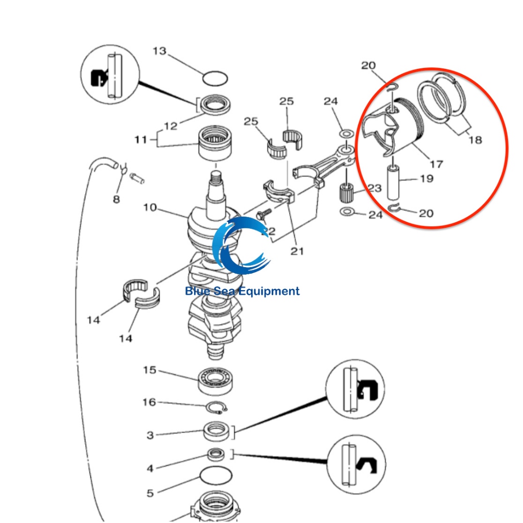 Piston Kit (3 Sizes) for Yamaha Outboard E60J / E75B / 85A (2 Stroke) - 688-11631-00
