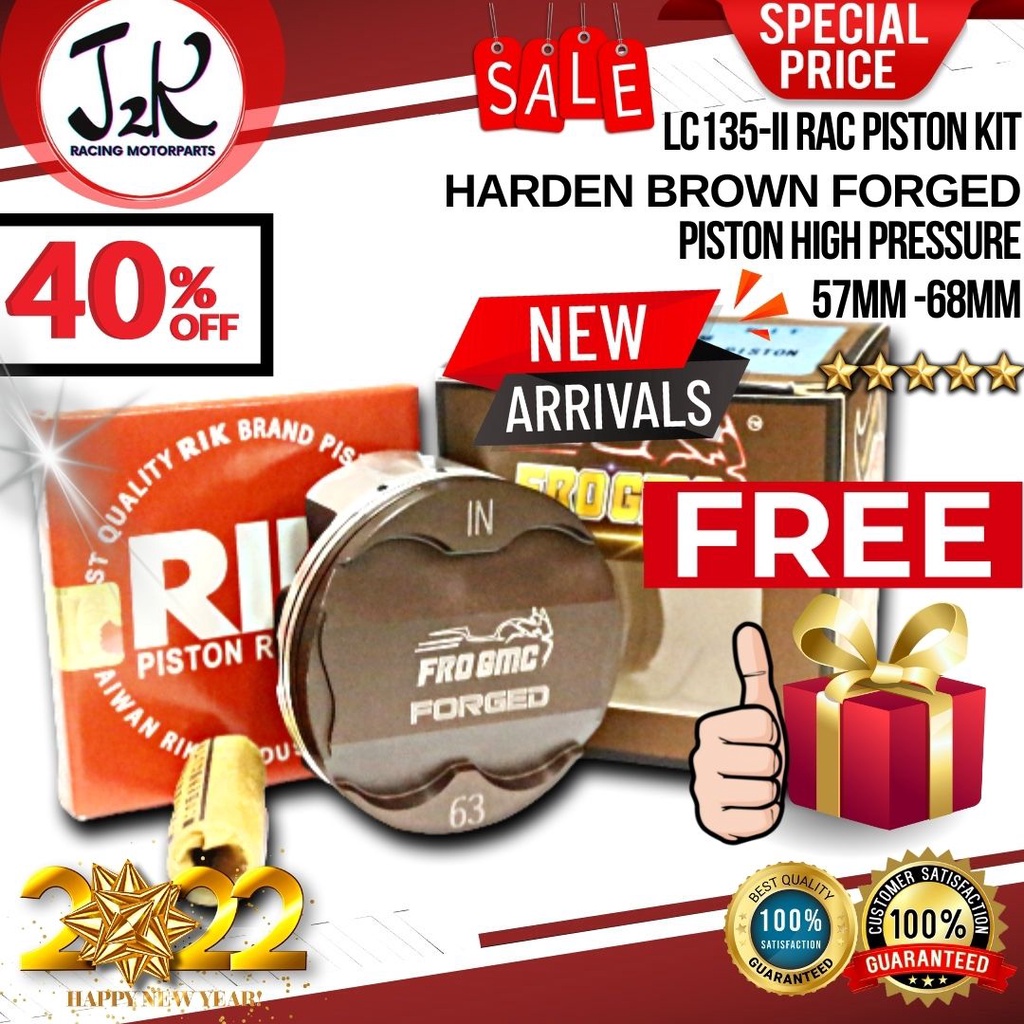 Piston Lc135 SET 57MM 68MM LC135 Y15 FZ150 FORGED RACING PISTON SET Big Pocket Valve Forged Piston FULL SET