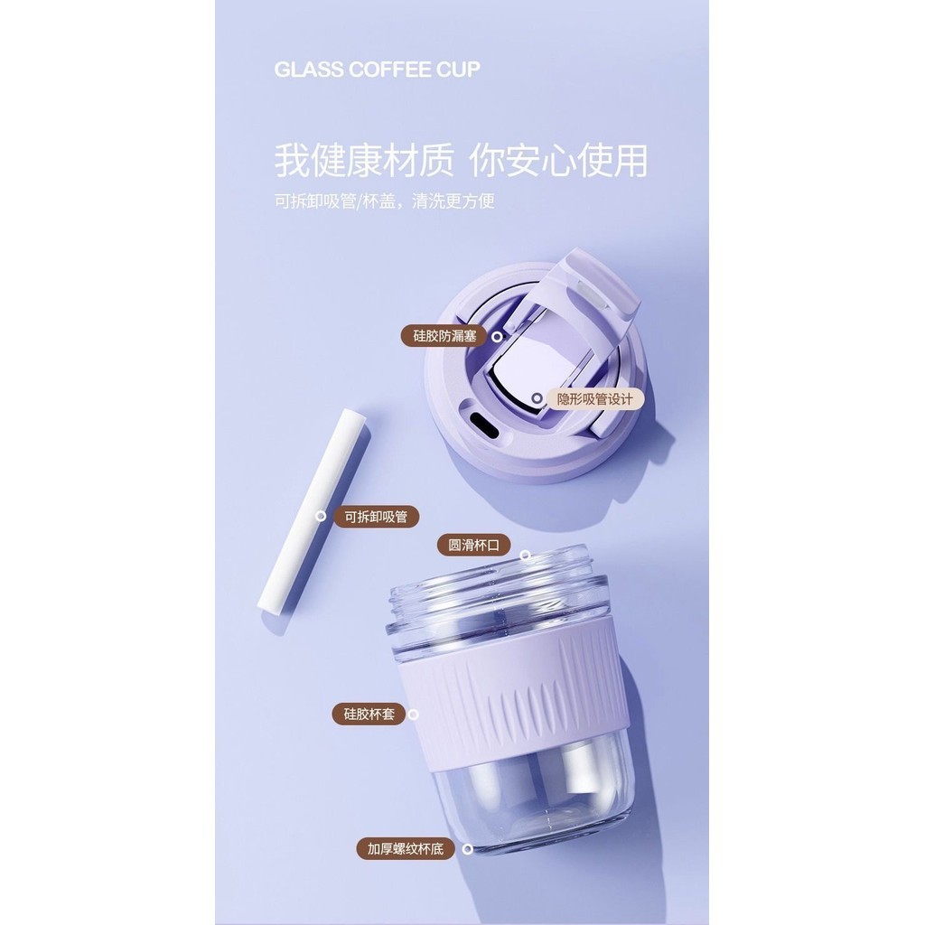 Botol Cawan Air Tahan Panas Macaron Dengan Penutup Macaron Water Cup Bottle With Lid Sealed Cover 马卡龙耐热水杯
