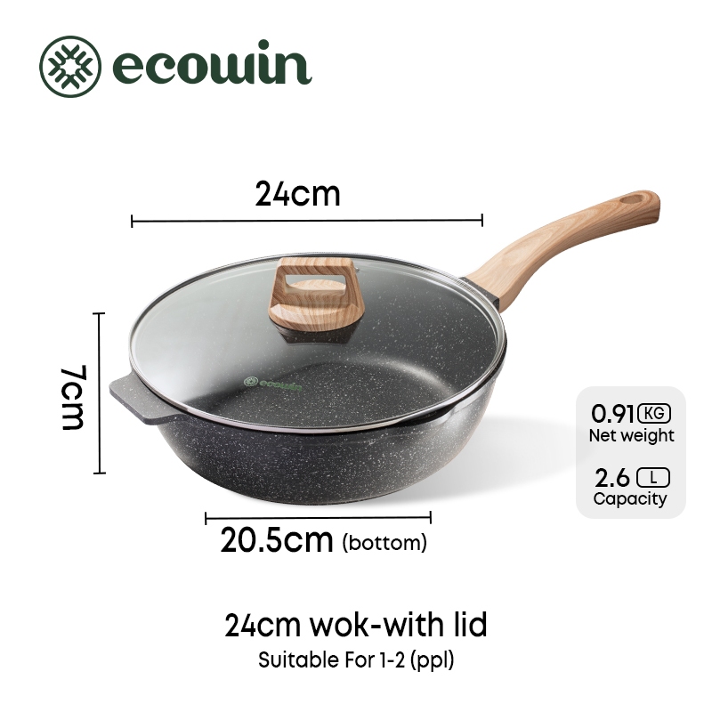 Ecowin Cookware Non Stick Pan Wok Stone Coating PFOA & PTFE Free Suitable For All Stoves Periuk
