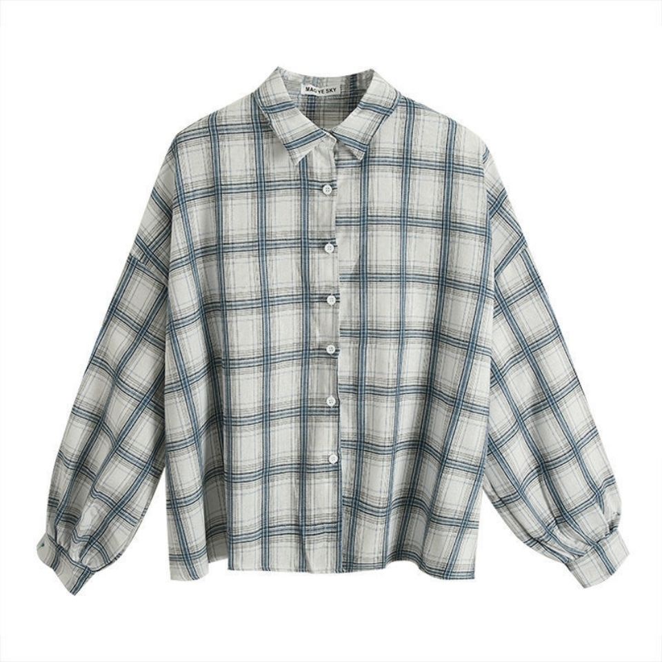 Plaid Shirt women's summer clothes new loose and versatile Lantern Sleeve long sleeve thin coat trend