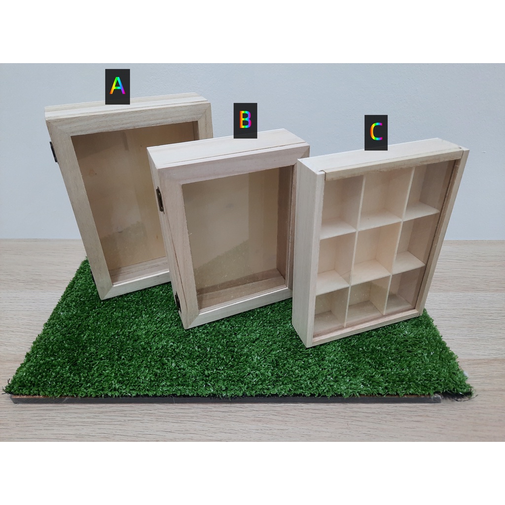 Plain Wooden Box Simple Kotak Kayu Hiasan DIY Kotak Hantaran Montessori Storage Box Wood Display Box Clear Lid
