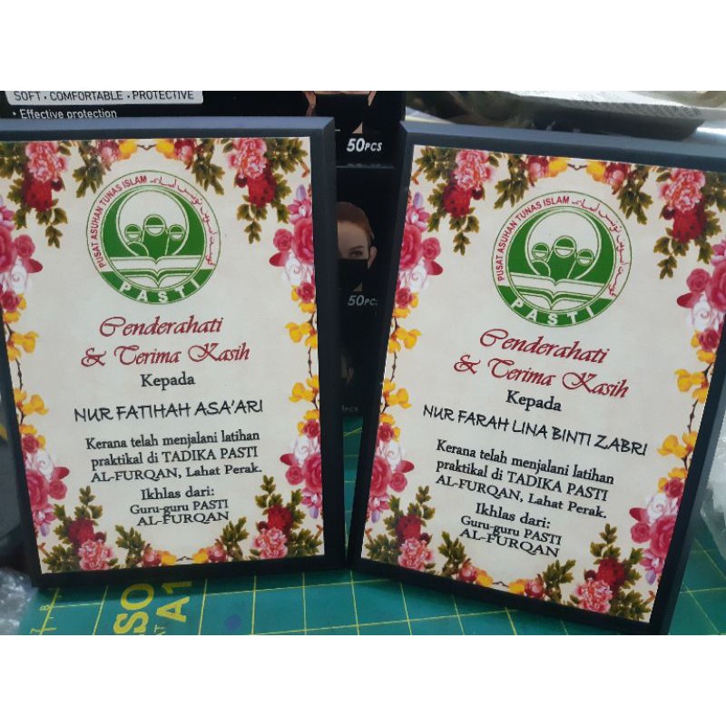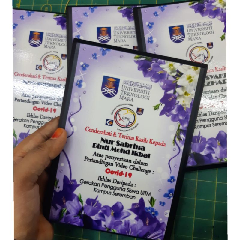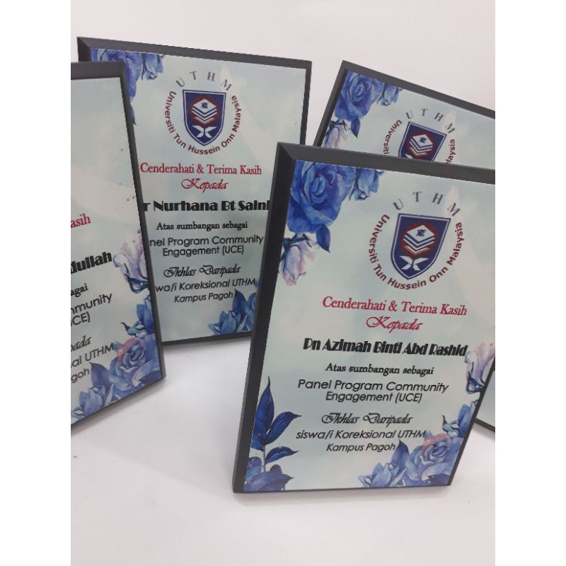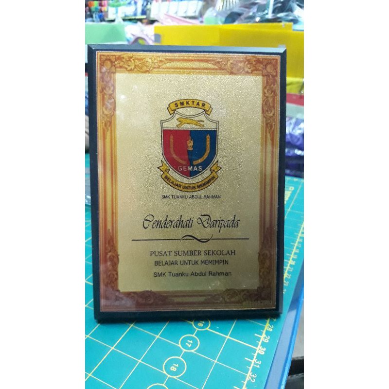 Plak 4 x 5 inch cenderahati bersama tulisan dan logo