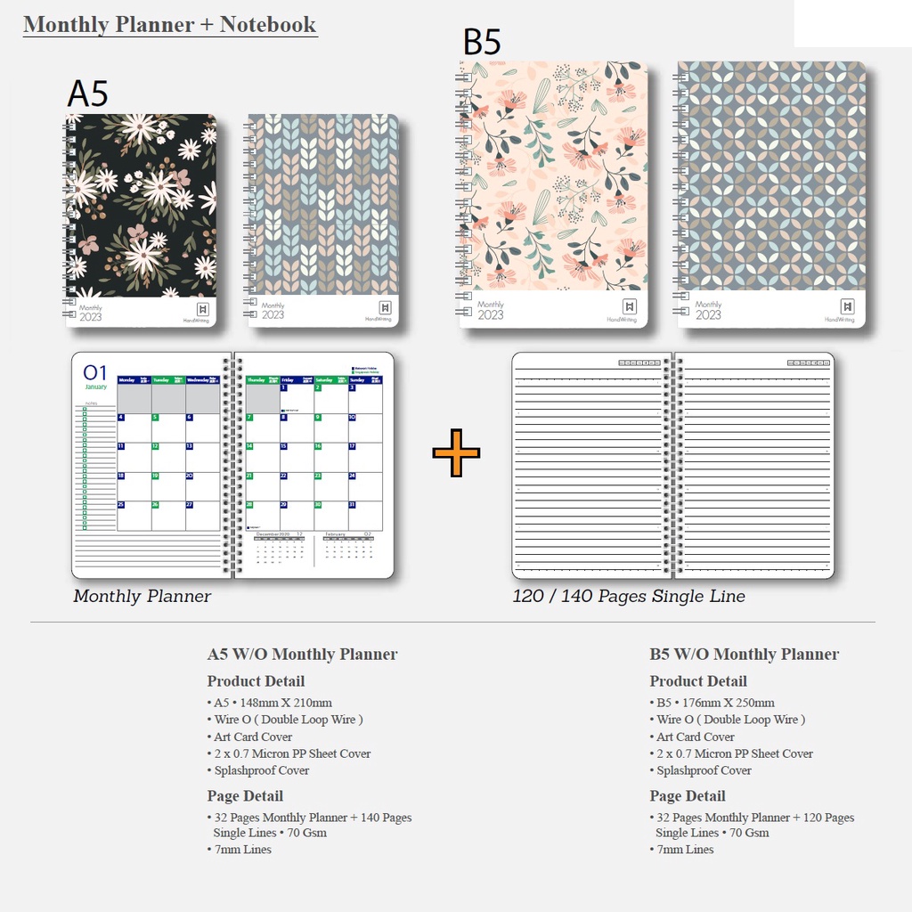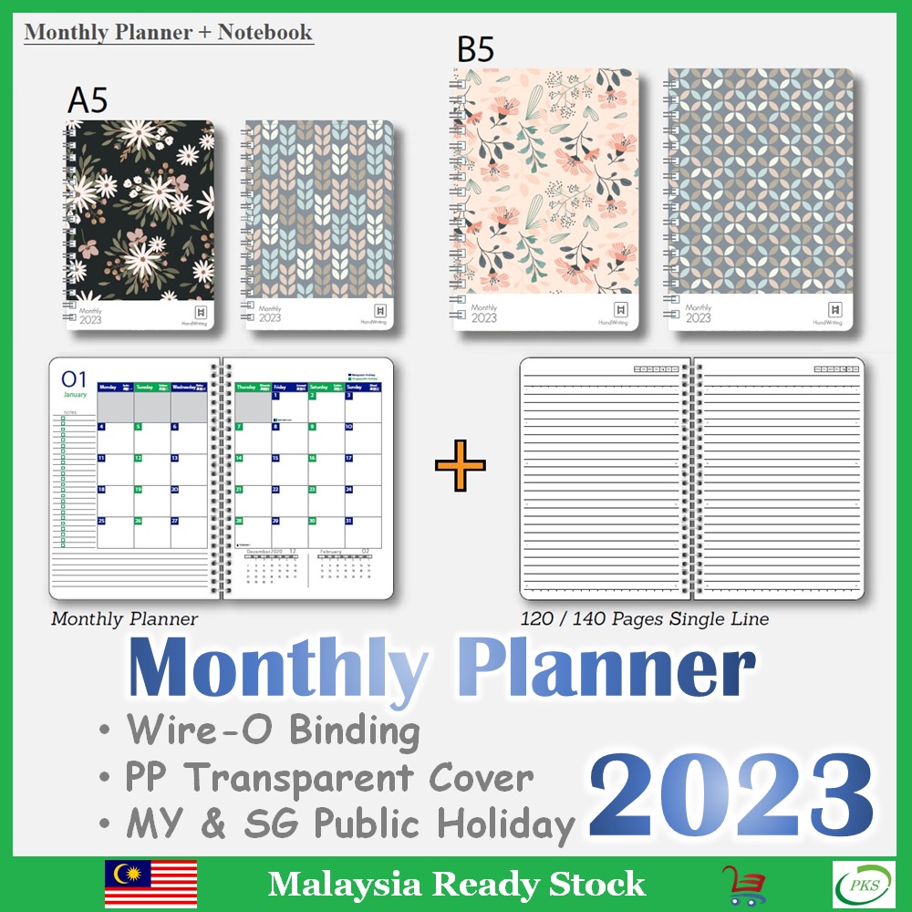 Planner Diary 2023 A5/B5 Monthly Planner Wire-O Notebook Buku Diari 2023