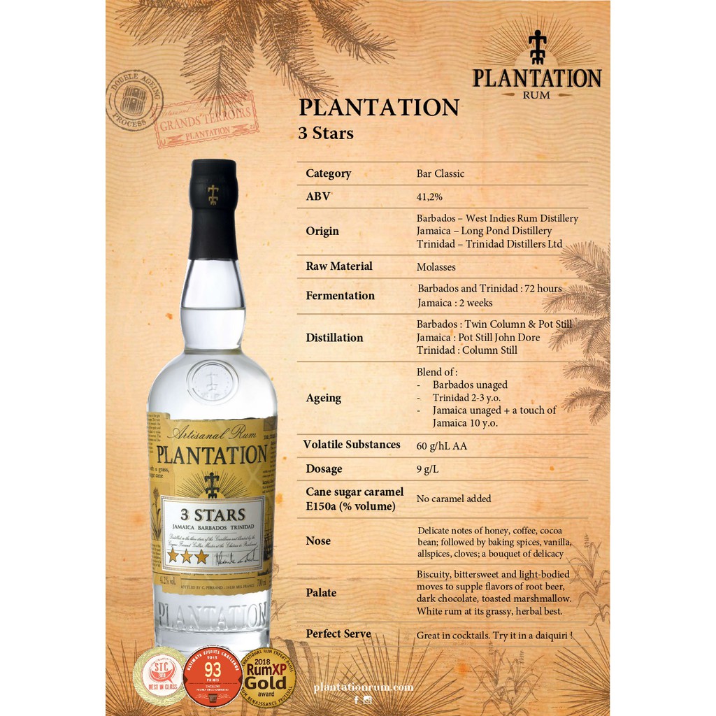 Planteray 3 Stars White Rum (700ml)