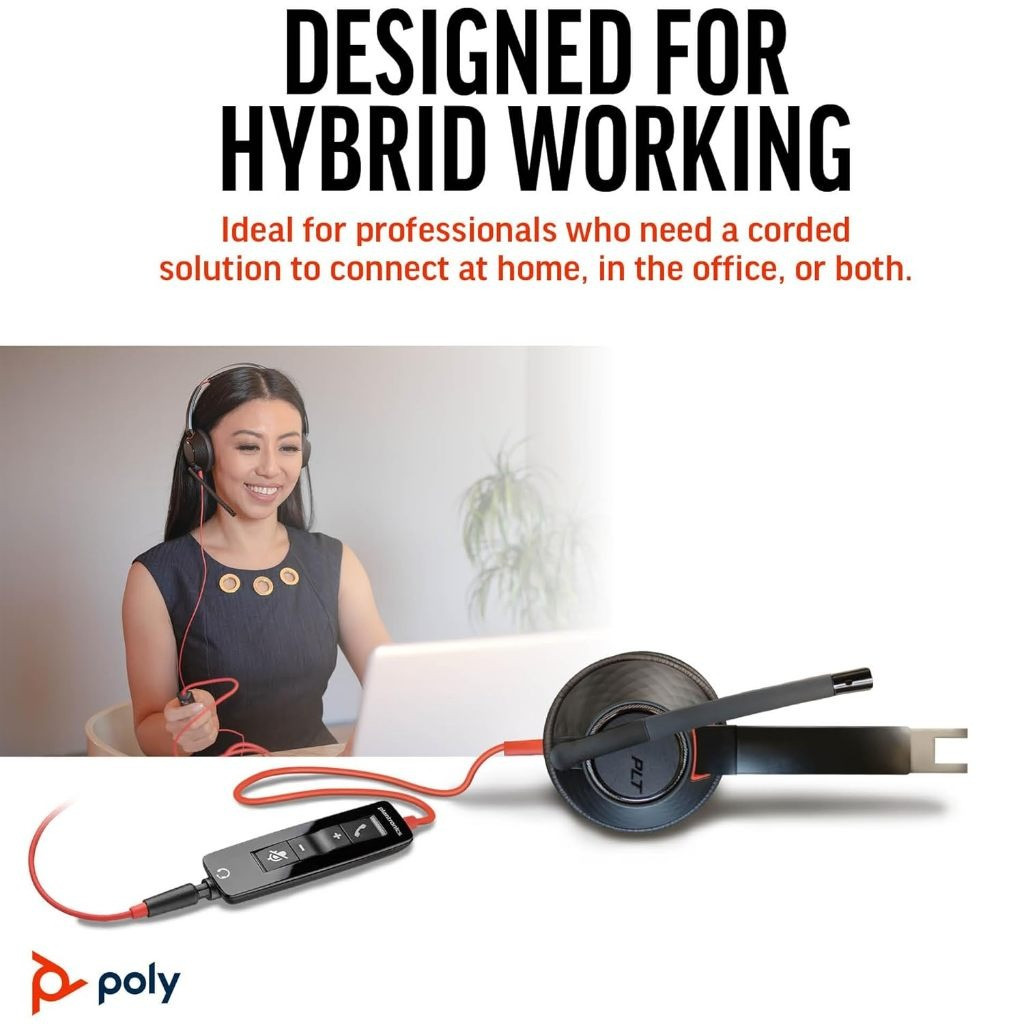 Plantronics Poly Blackwire C5220 Wired Headsets, 3.5mm/USB Wire Control Headphone with Mic Call