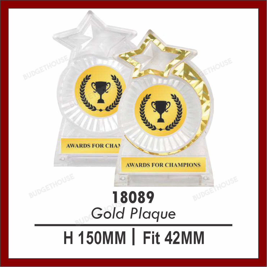 Plastic Acrylic Plaque + LABEL + LOGO ( HADIAH SUKAN DAN HADIAH ANUGERAH CEMERLANG ) TROPHY Plak cenderahati