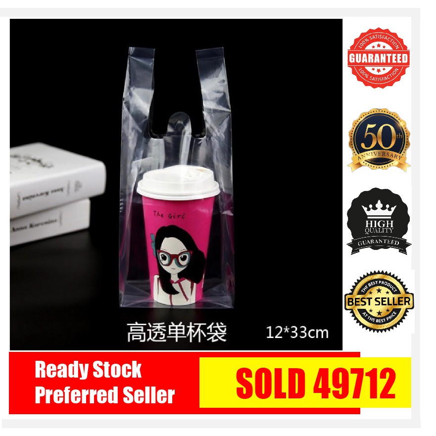 Plastic Bag Clear/Transparent/Plastik Tangkai For Cup 50pcs