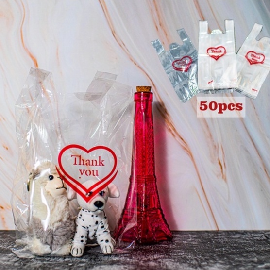 Plastic Bag Thank You size S 50pcs | Transparent Bag | Plastik Packing Bungkus Doorgift Biskut