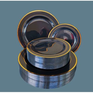 Plastic Tableware Black / Blue Goldrim Plates Cups Cutlery Spoons Forks Knife Party Disposable