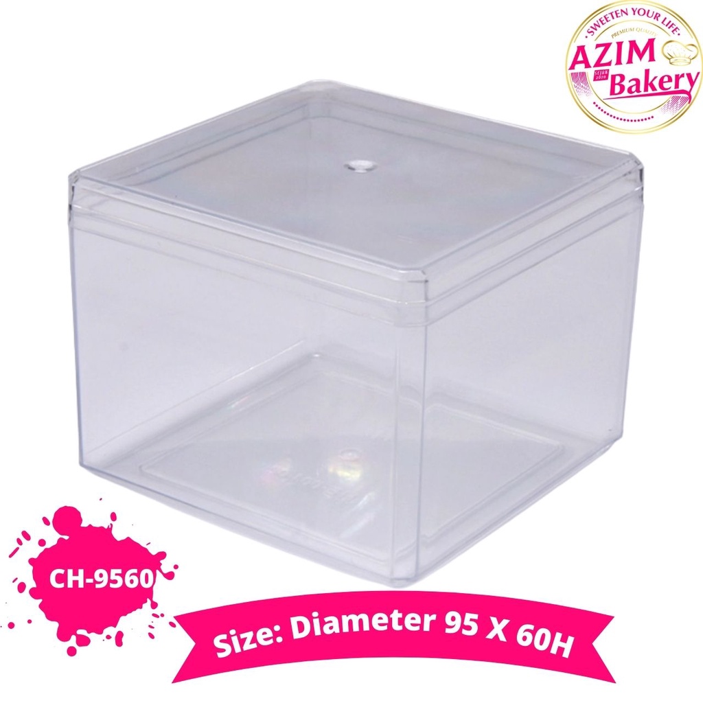 Plastic Cookies Container CH-9560 (1pc) Bekas Cookies Petak Biscuit Container | Transparent Cookie Container Square