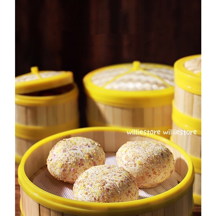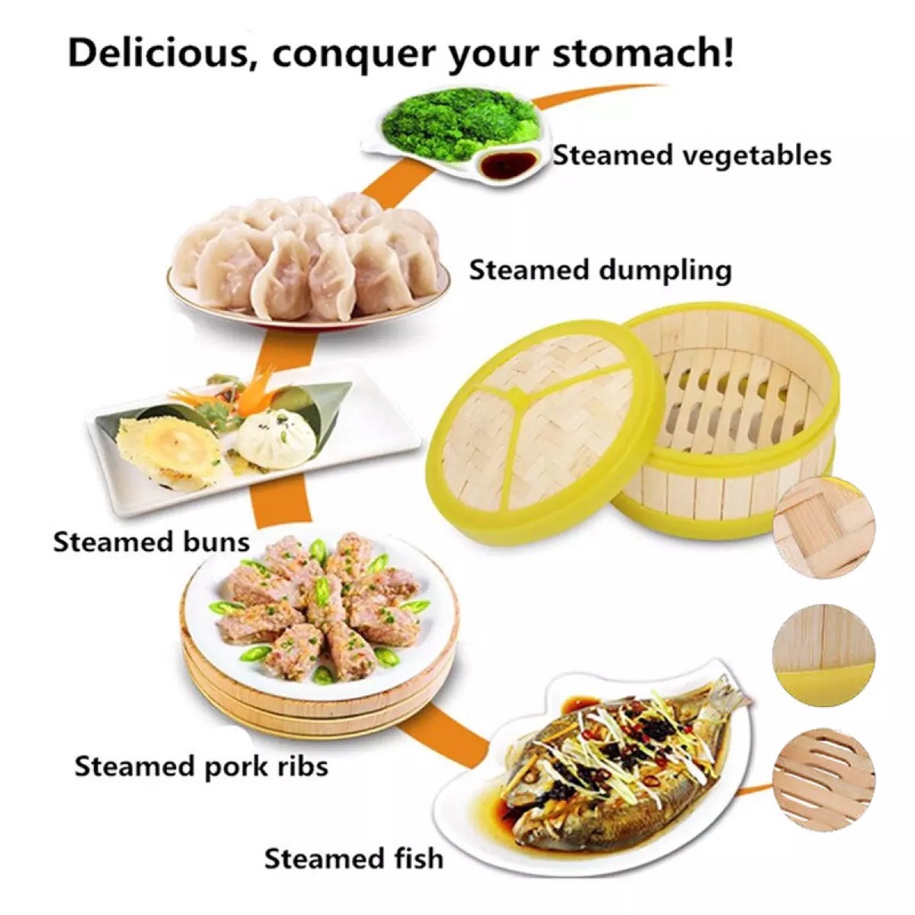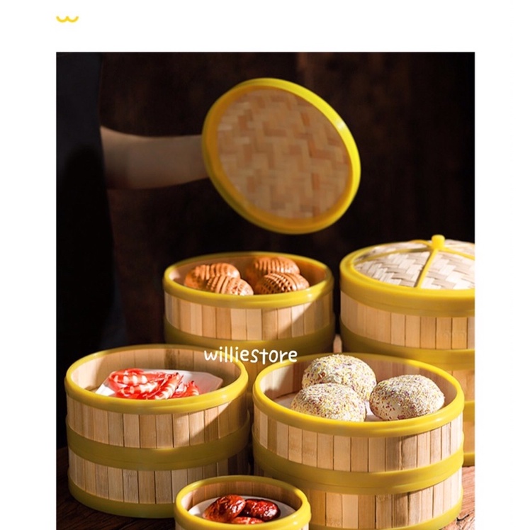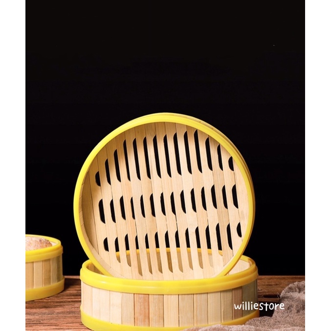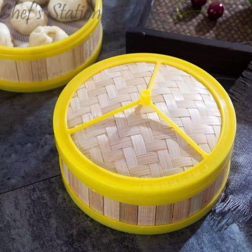 Plastic Dim Sum Bamboo Steamer/Bakul kukus pau/Dim Sum Basket/Pengukus buluh Pengukus Pau/Yellow Plastic-Edged Bamboo