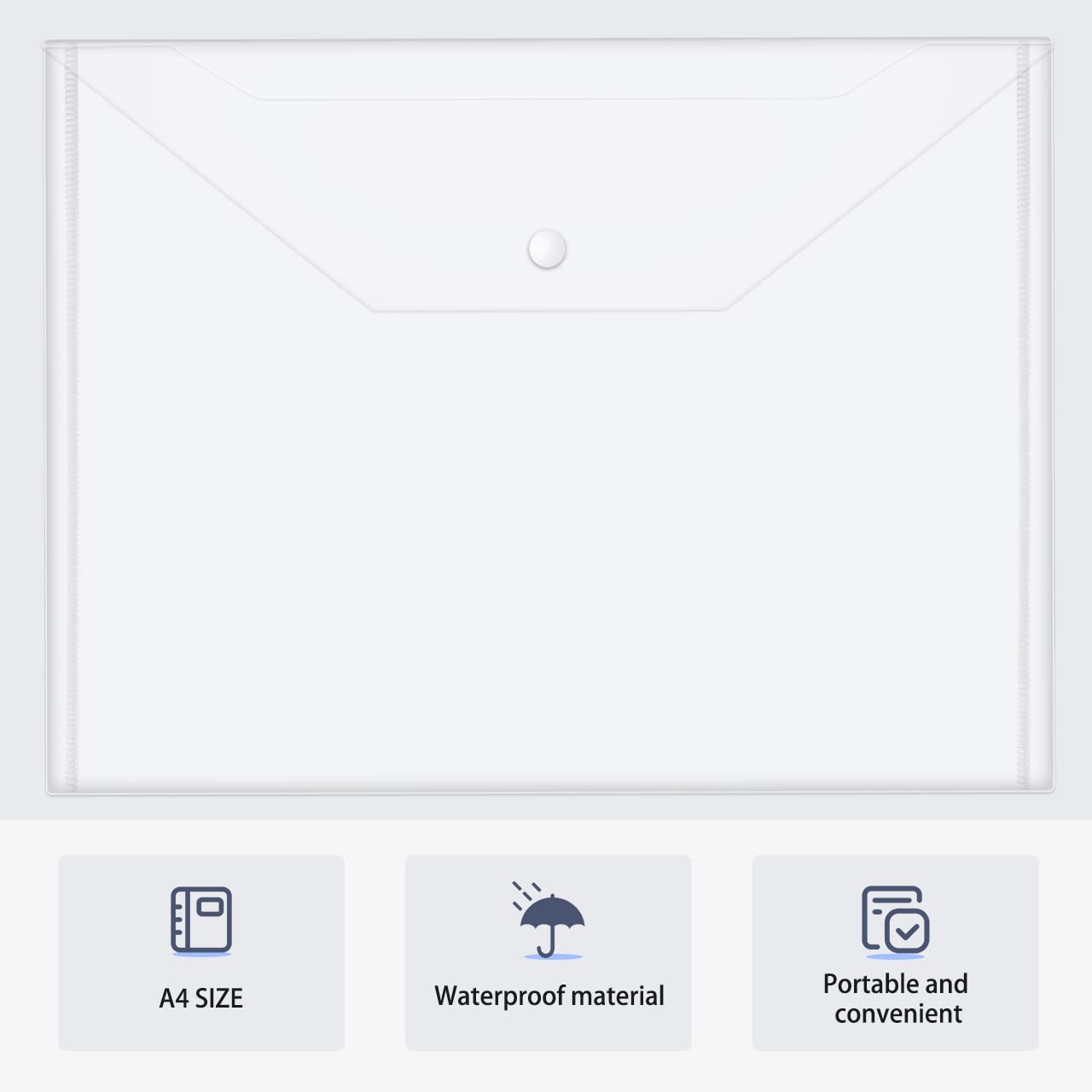 Plastic Envelopes, Clear Reusable Poly Envelope Waterproof File Folder with Snap Button, Us Letter/A4 Size