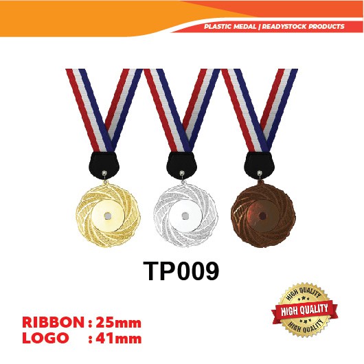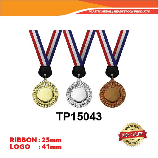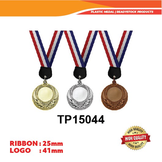 Plastic Medal With 25mm Ribbon + Label Sticker Both Side