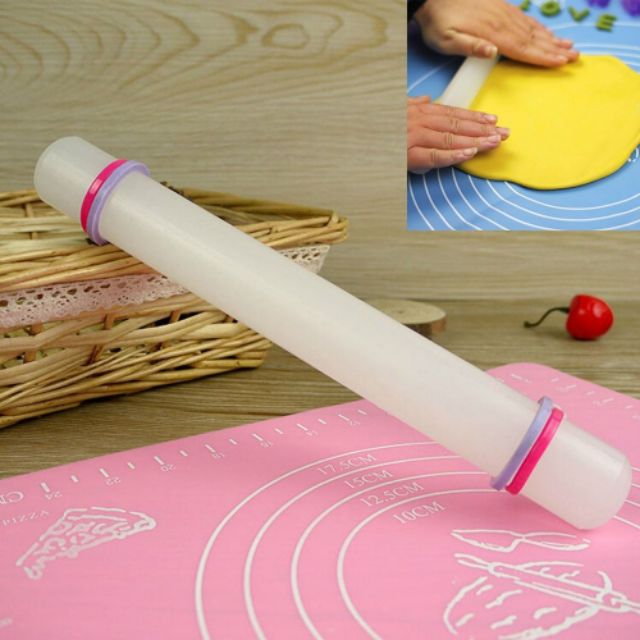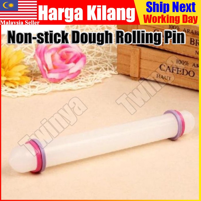 Plastic Non stick Rolling Pin Dough Flour Fondant Cake Decors Ring Roller White Roll Stick