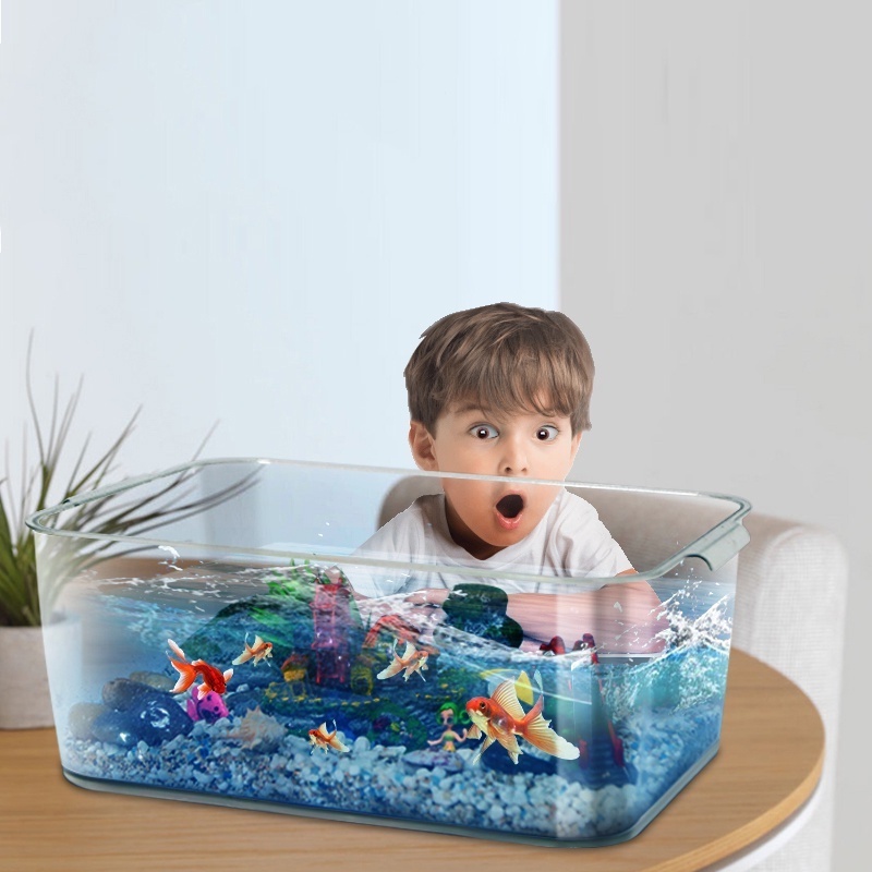 Plastic Shatterproof Transparent Fish Tank Fish Bowl Fish Aquarium With Handle With Lid