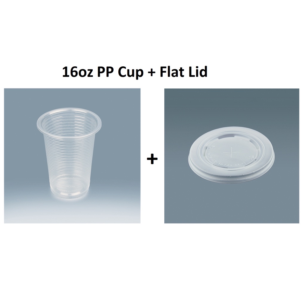 Plastik Cawan Pasar Malam 12oz/16oz/22oz Clear PP Plastic Cup with Flat Lid or Dome Lid [100 Sets]/ Economic PP Cup