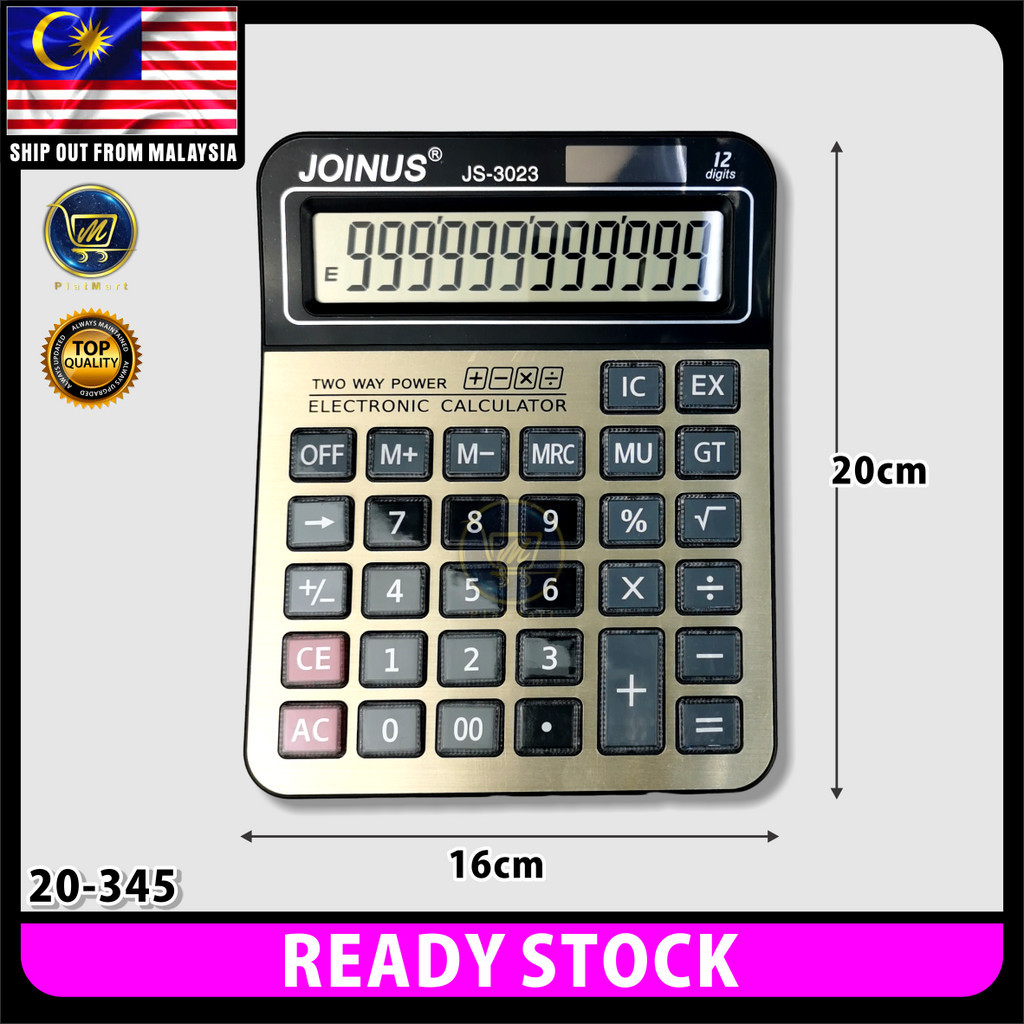 PlatMart - [READY STOCK] Big Display Calculator 12 Digits Solar Battery Powered Office School Stationery 20-345