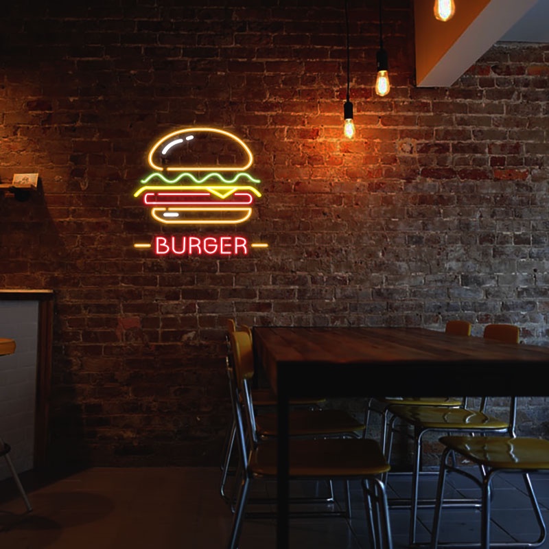 Plug & Play Neon Sign burger stall restaurant signage LED neon sign lighted burger logo