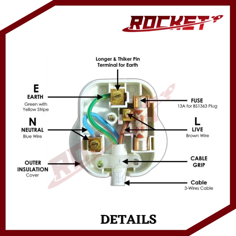 Plug Top 13A SIRIM High Quality 13A Plug Top Fuse Plug Top UK 3pin READY STOCK