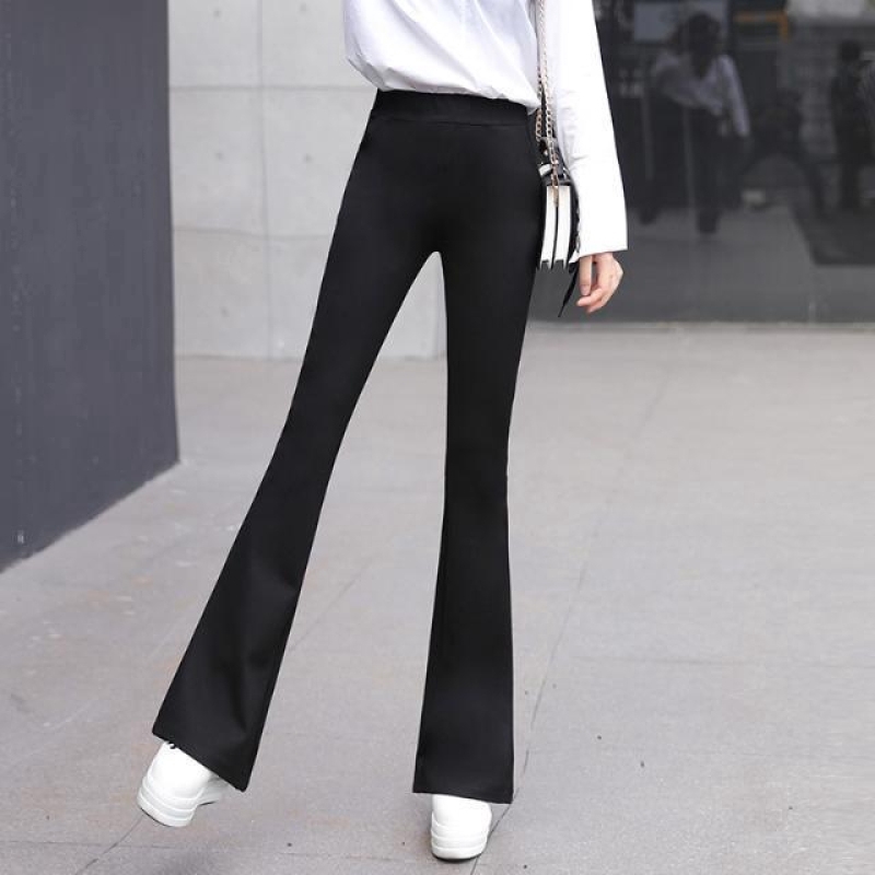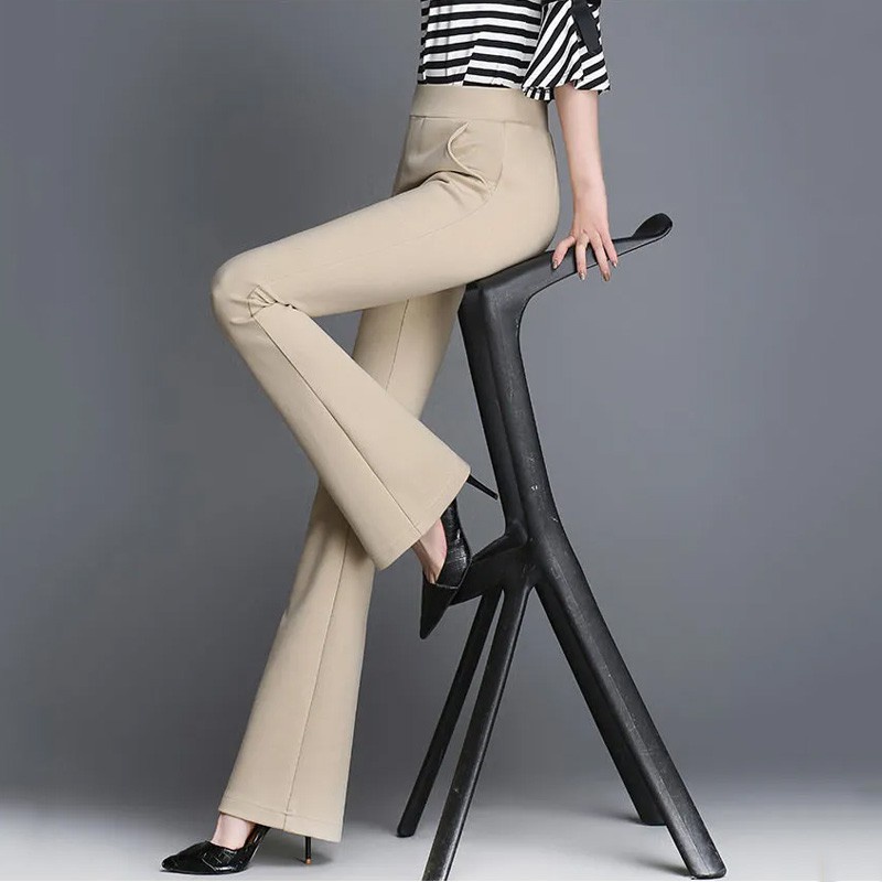 Plus Size S-3XL Bootcut Long Pants Women High Waist Flare Korean Style Slimming Casual Vintage Black Stretchable Formal Office Work Ladies Woman Seluar Slack Kerja Slek Hitam Panjang Fit Perempuan Wanita Muslimah Palazo Zumba