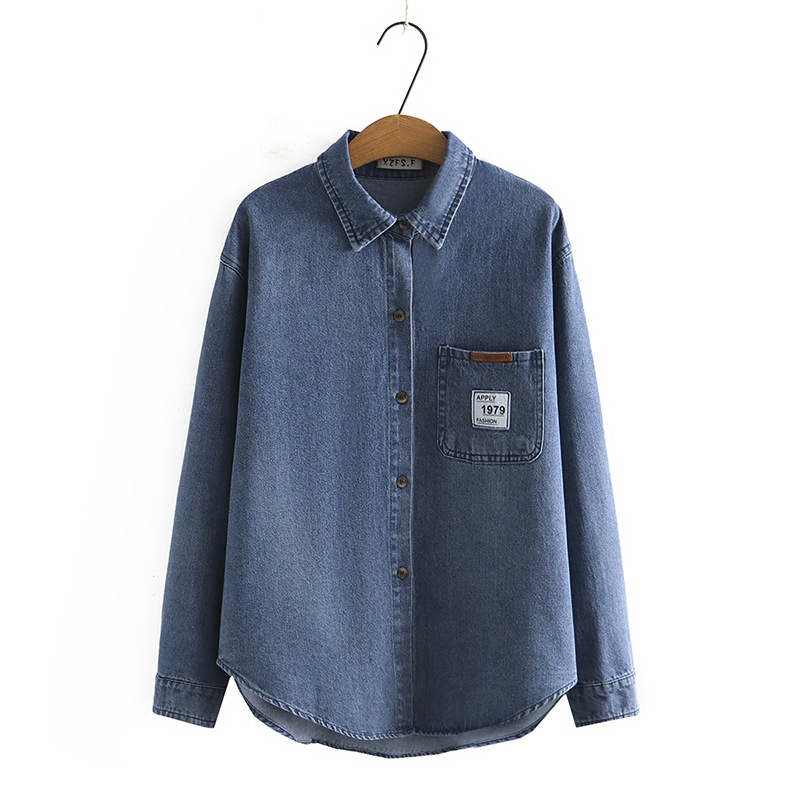 Plus Size XL-4XL Women's Long Sleeved Cotton&Denim Blouses Ladies' A-line Office-wear Autumn New Tops