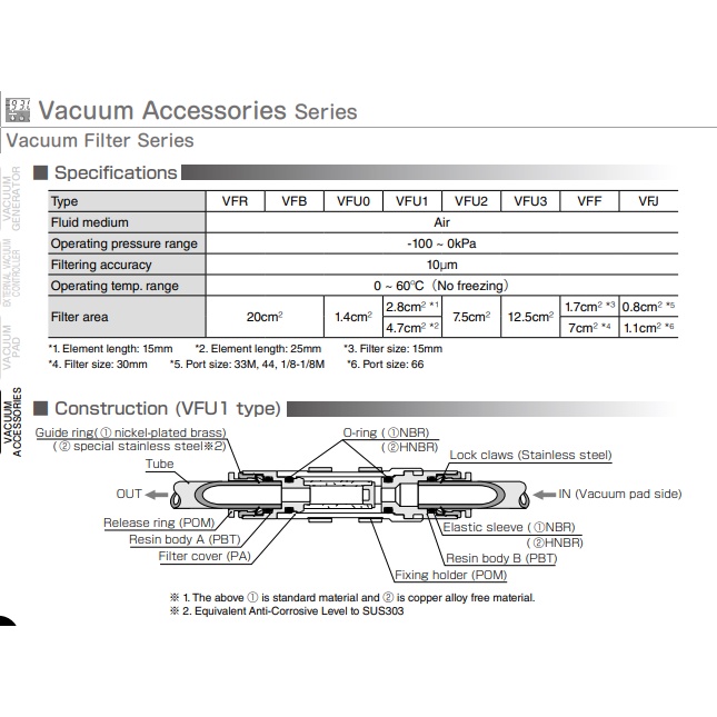 Pneumatic Fitting Pisco Pneumatic Vacuum Filter Small Union Resin Body Type VFU3-1010P