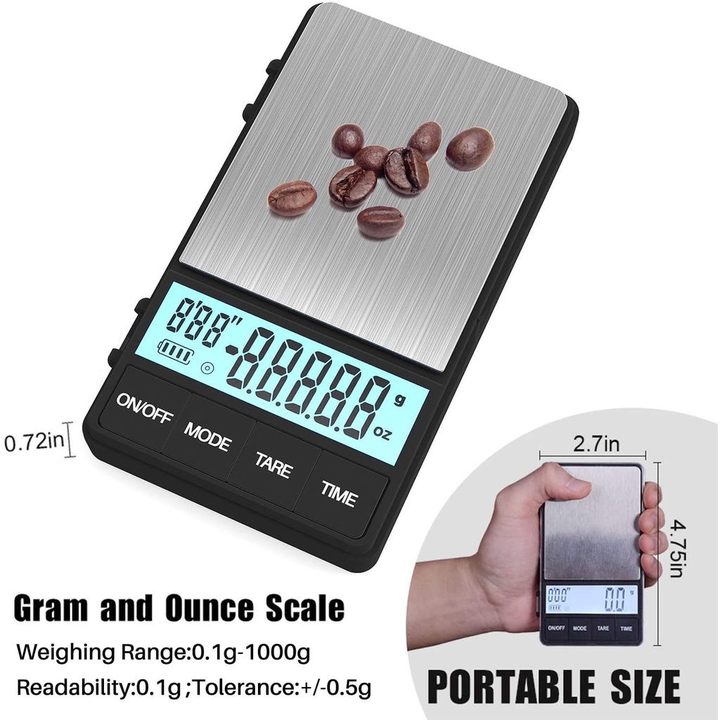Pocket Espresso Scale with Timer 1000g x 0.1g Espresso Coffee Scale for Drip Tray Large Backlit Display Coffee Scale