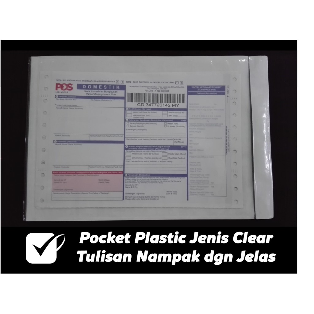 Pocket Plastic Tebal (100 Pcs / Pack) GAM KUAT (Letak Consignment Note/Waybill Courier Services)