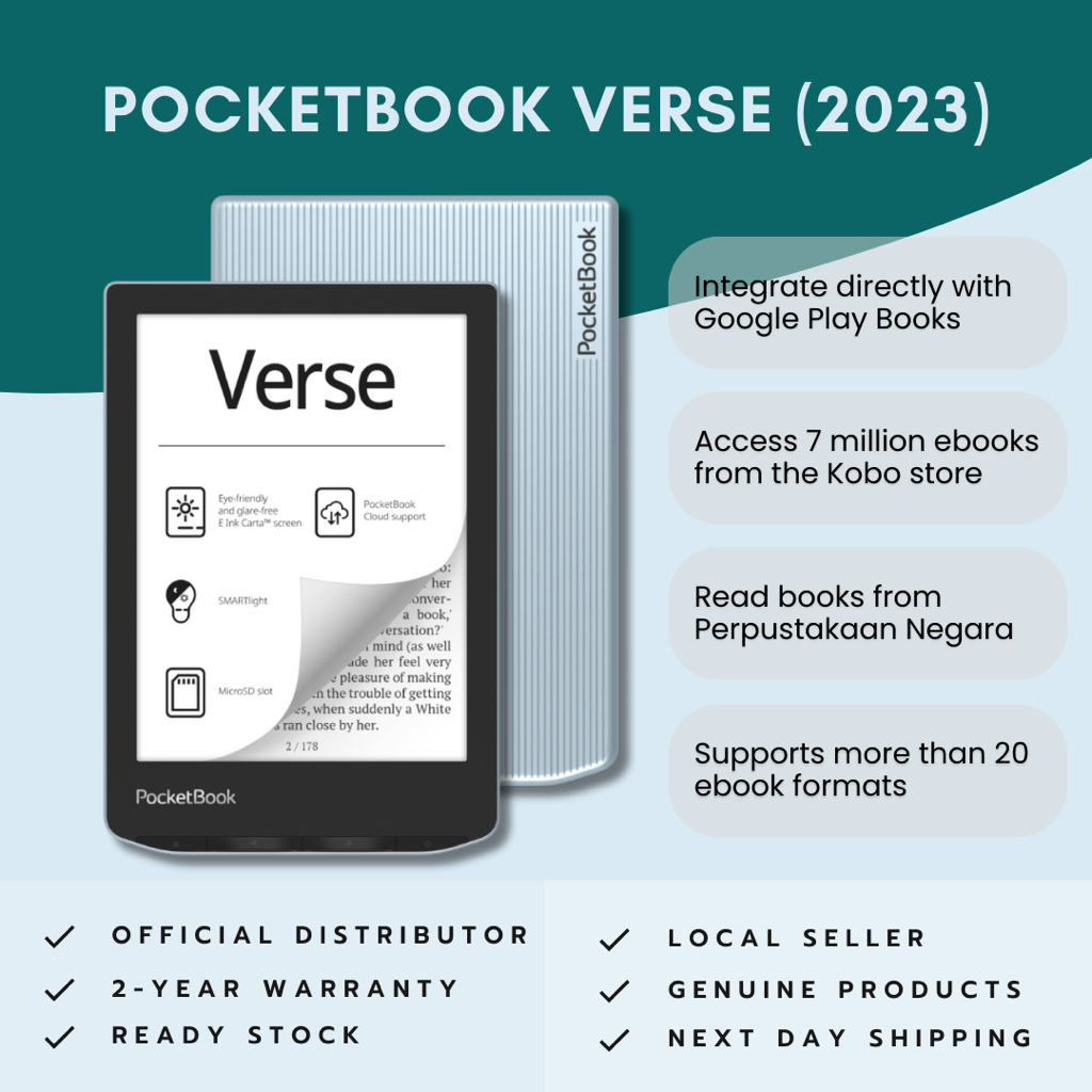 PocketBook Verse (2023) 6" ereader - Perpustakaan Negara Overdrive & Google Play Books support, warm-light, 8GB
