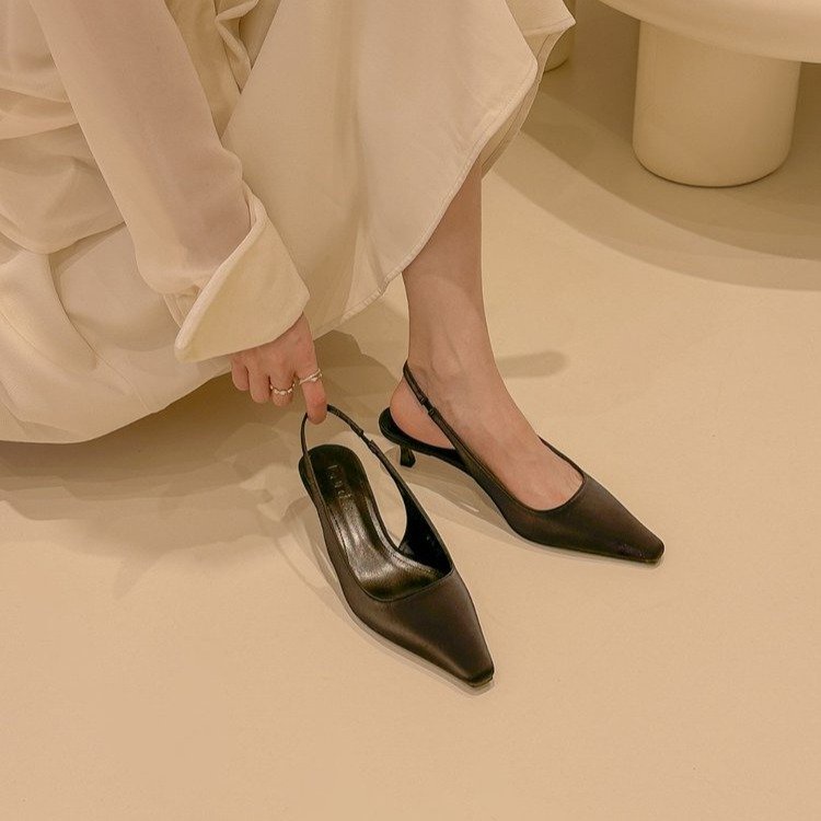 Pointed Toe Low Heels Back Strap Stilettos