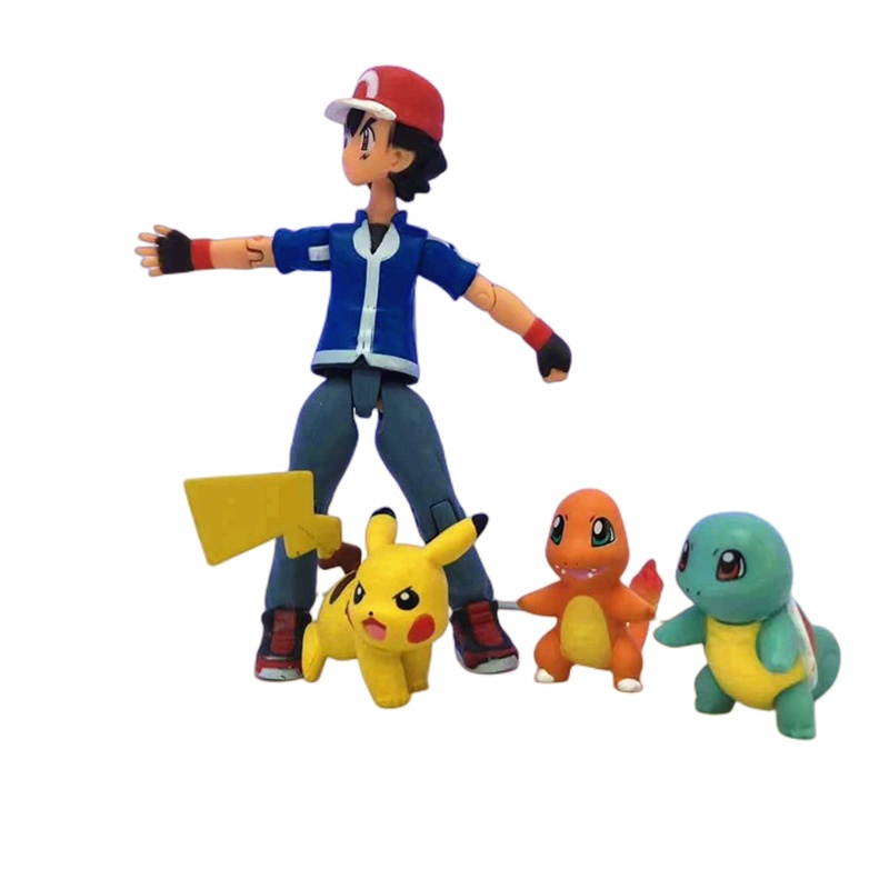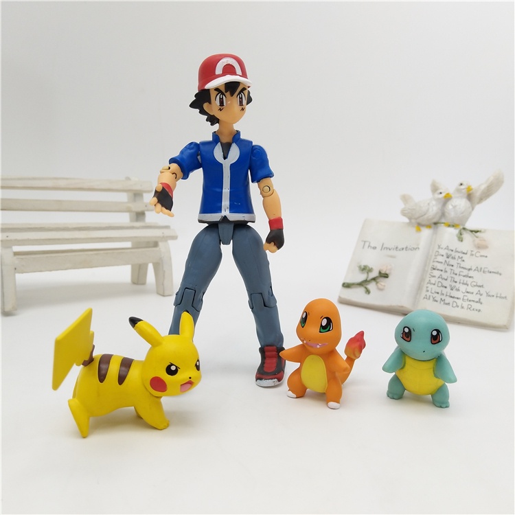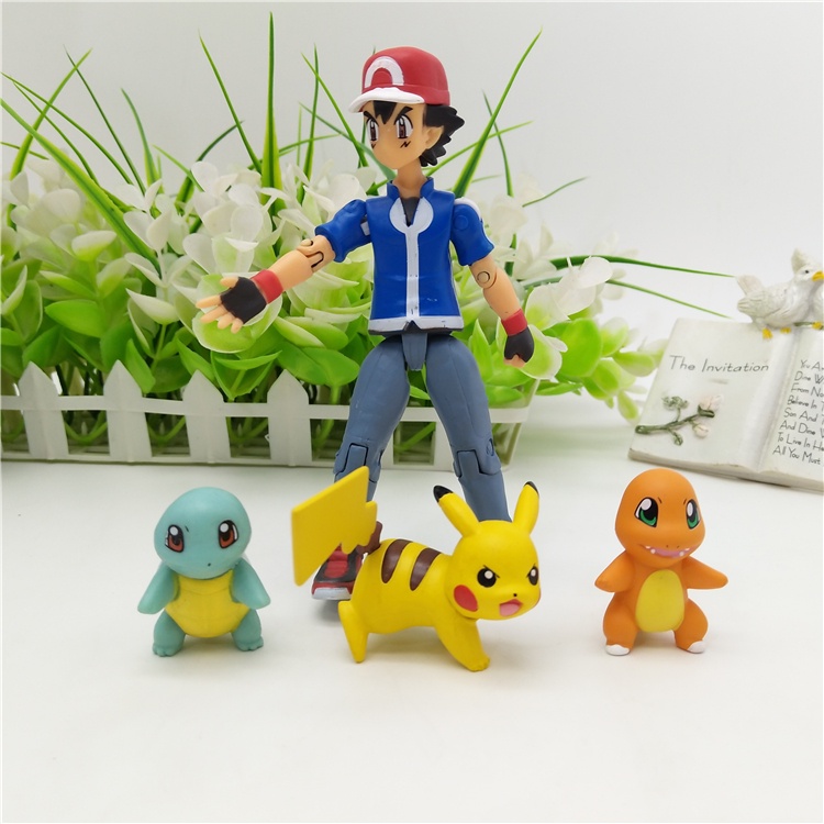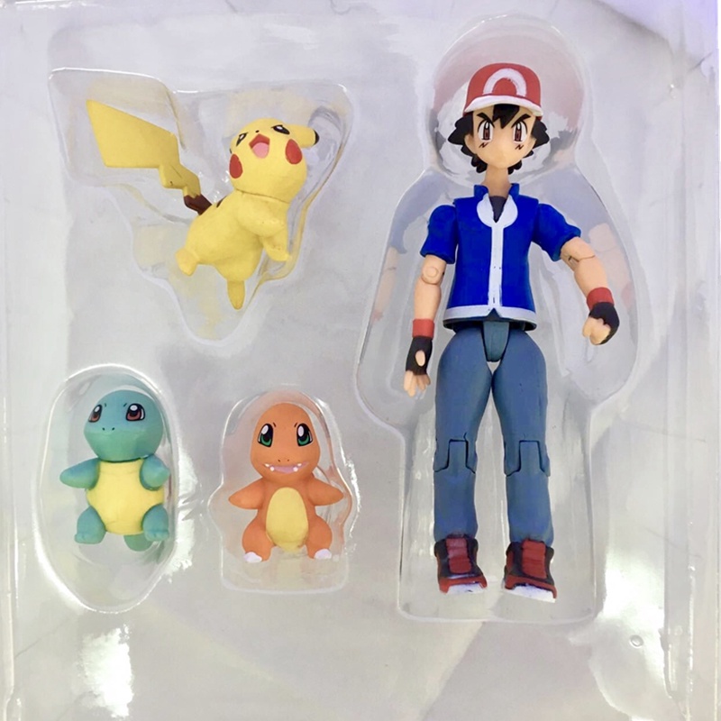 Pokemon Anime Kawaii Figma 052 Pokemon Ash Ketchum Pikachu Charmander Squirtle Classic Action Figure Collectible Model Toy Gift