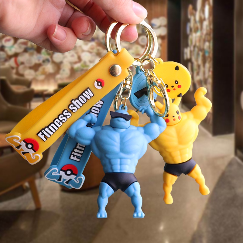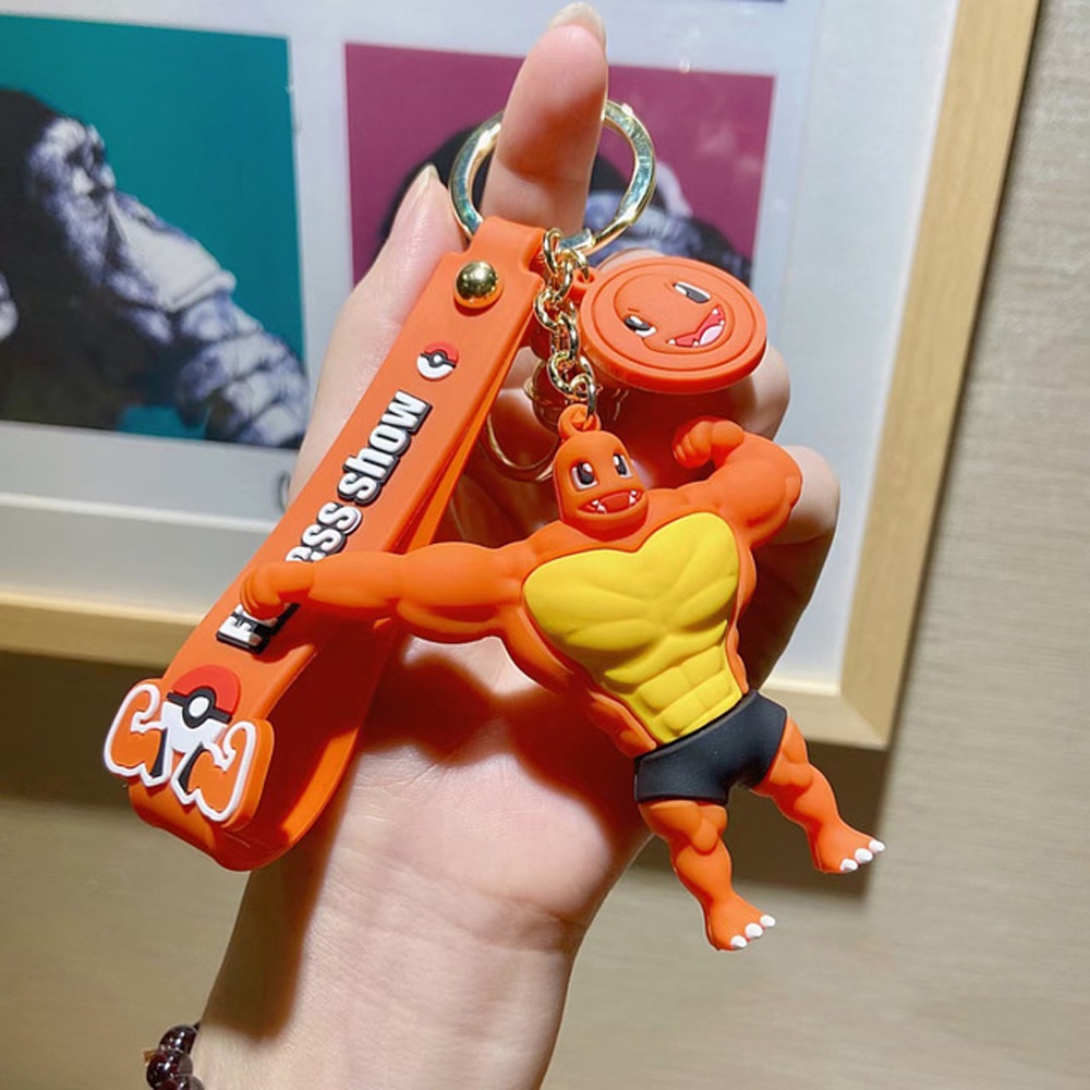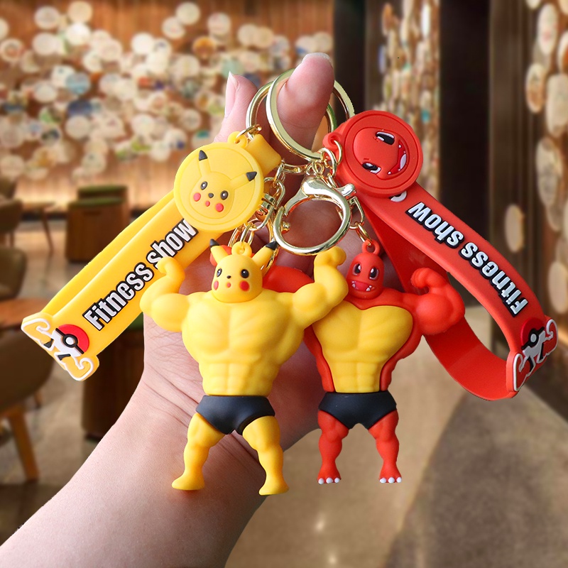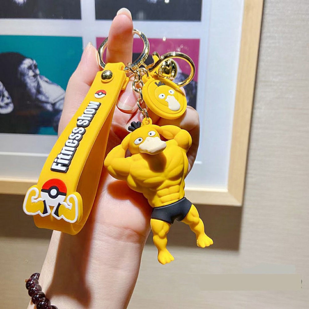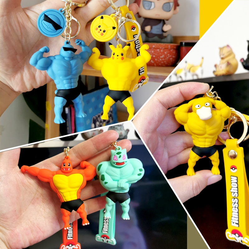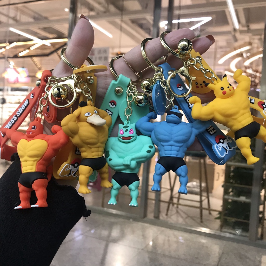 Pokemon Anime Pikachu Charmander Psyduck Squirtle Bulbasaur Muscle Man Anime Key Chain Bag Key Ring Pendant