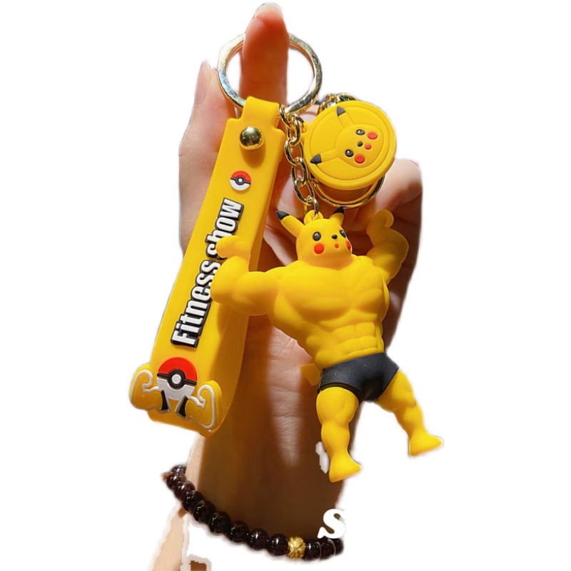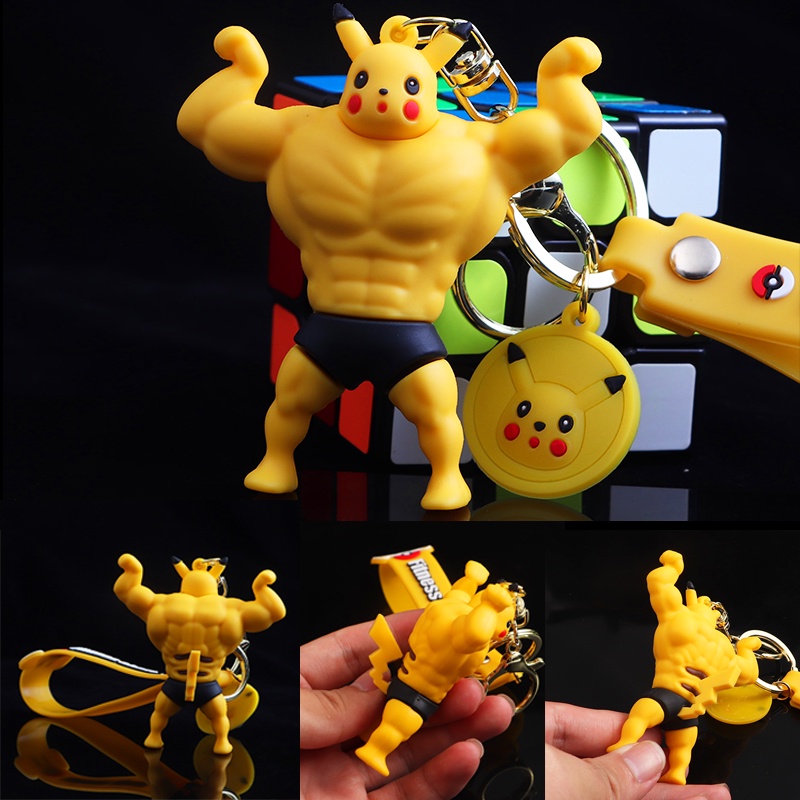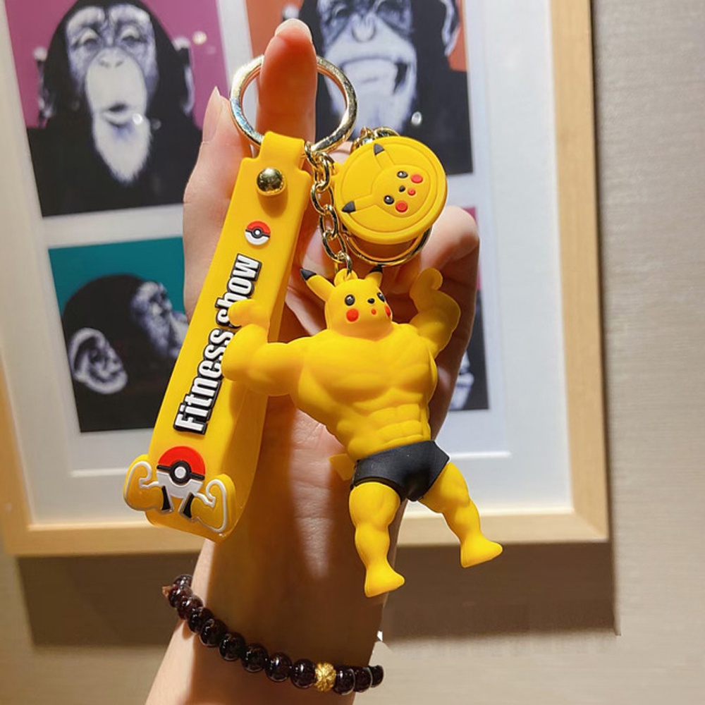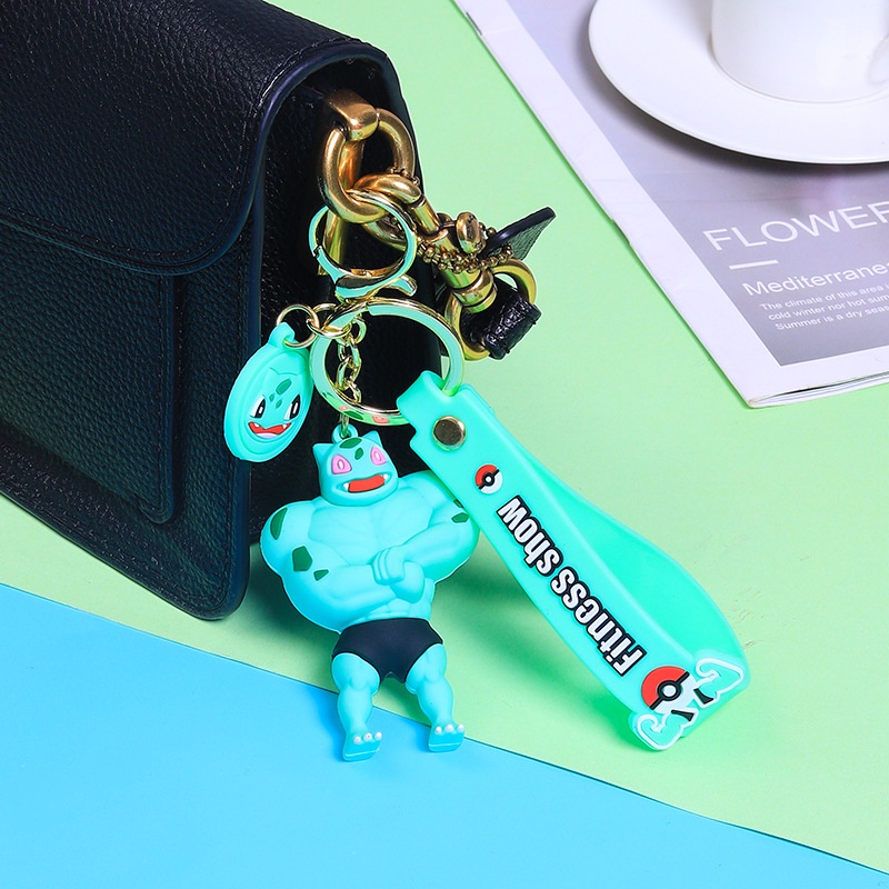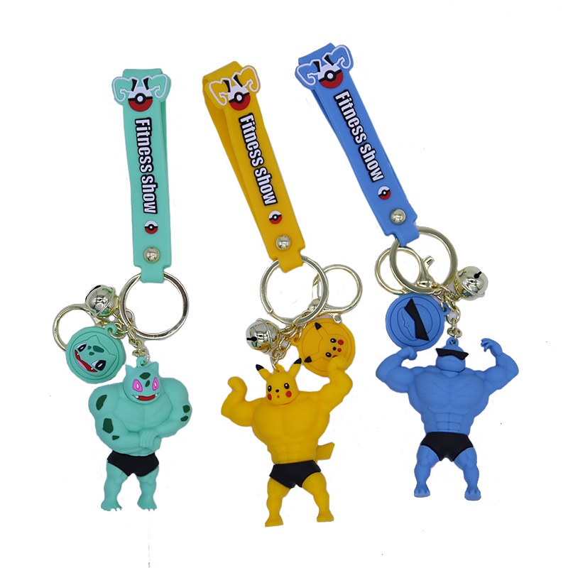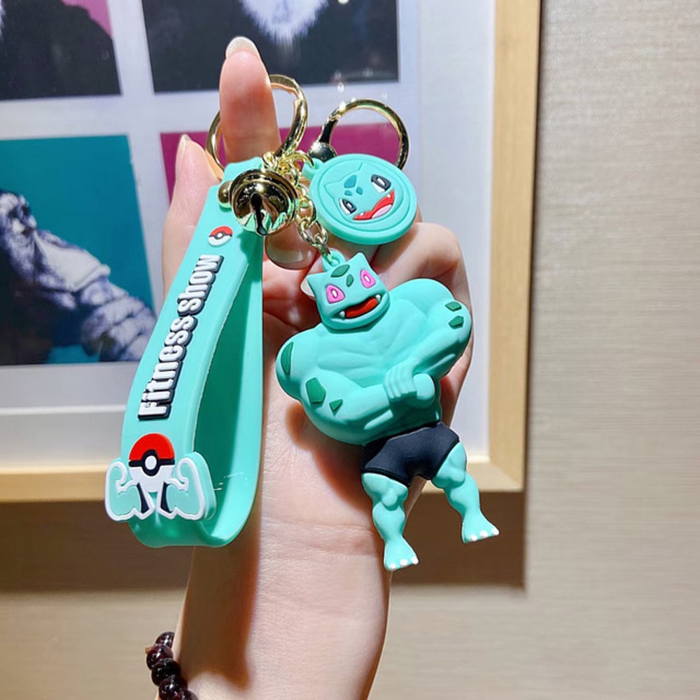 Pokemon Anime Pikachu Charmander Psyduck Squirtle Bulbasaur Muscle Man Anime Key Chain Bag Key Ring Pendant