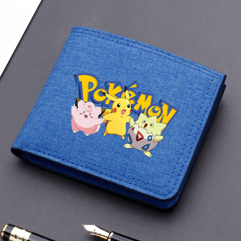 Pokemon Canvas wallet Cartoon Pikachu Printed Short folding wallet Portable Children's Card holder Coin box Student exclusive birthday gift