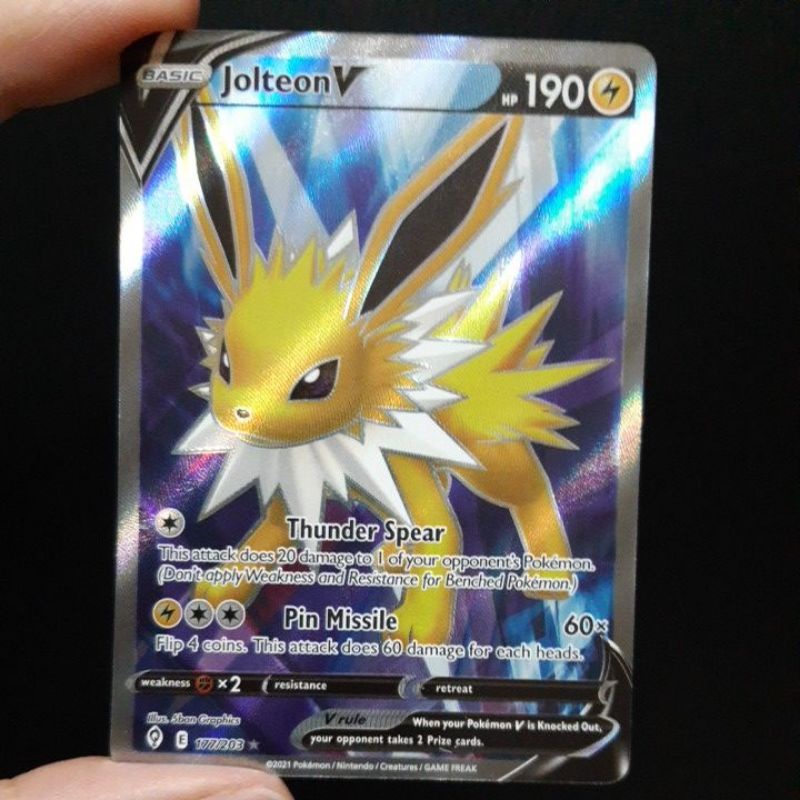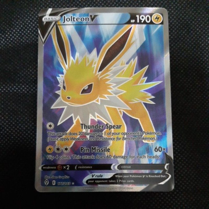 Pokemon Card TCG : Evolving Skies: Jolteon V 177/203 Full Art Ultra Rare 100% Original Pokemon Card