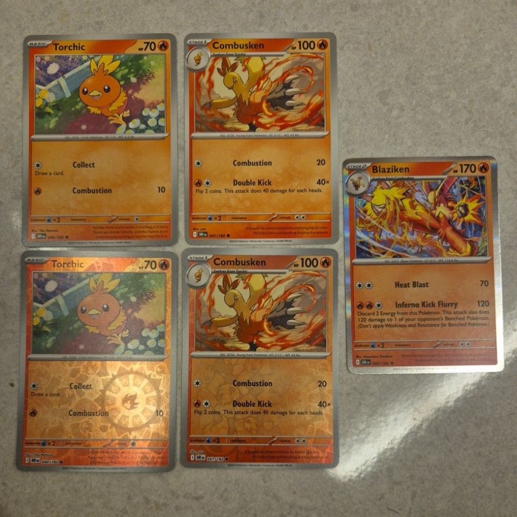 Pokemon Card TCG : SV10 Destined Rivals: Torchic 040/182 Combusken 041 Blaziken 042/182 Rare Holo