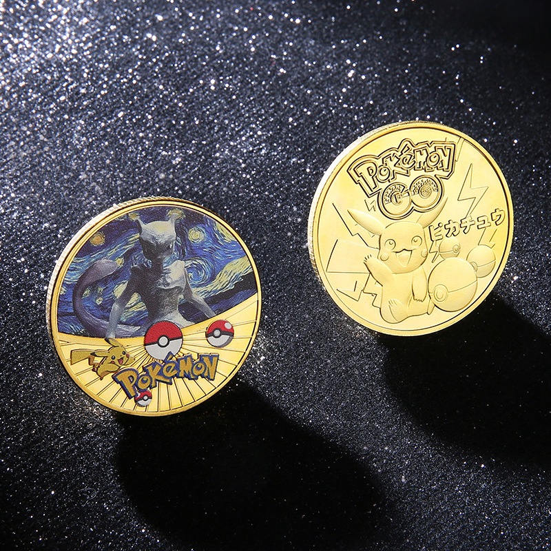 Pokemon Coins Metal Mewtwo Anime Commemorative Charizard Pikachu Pokemon Cards Round Metal Coin Toys