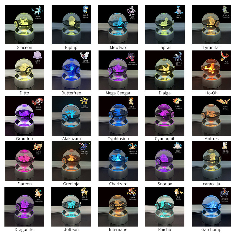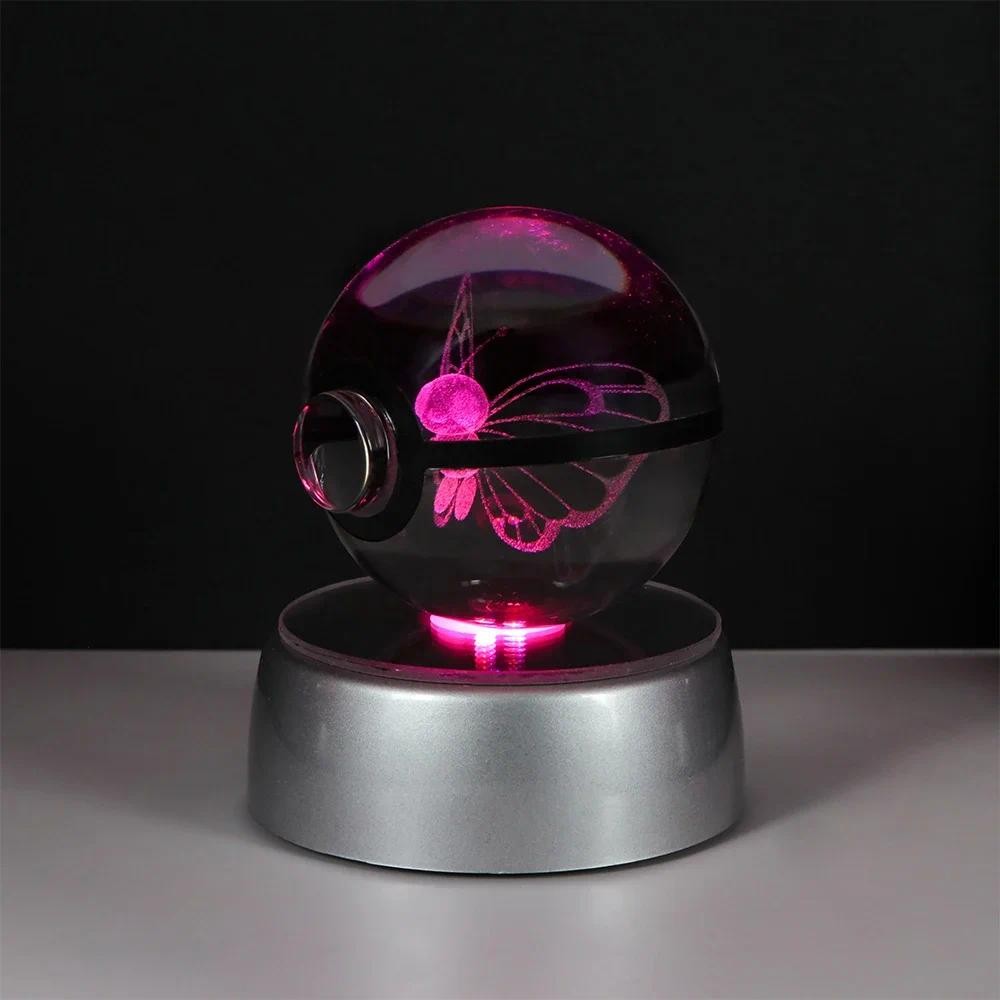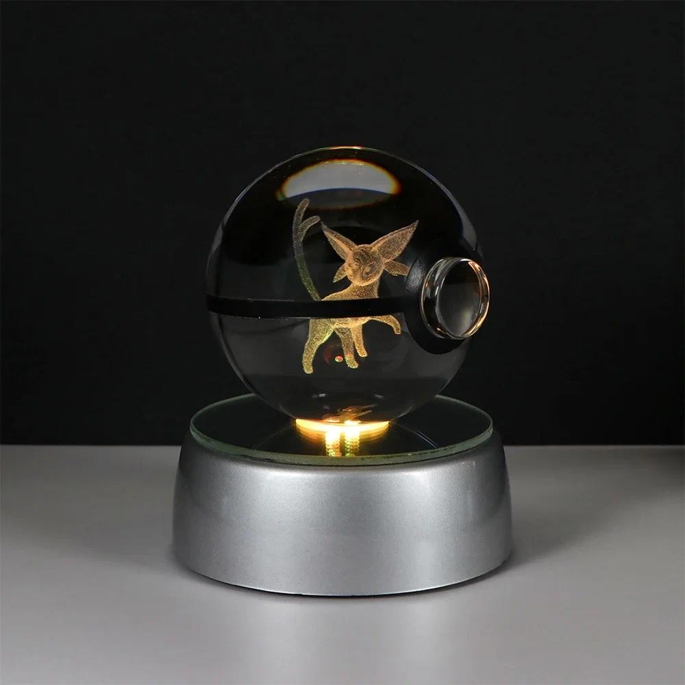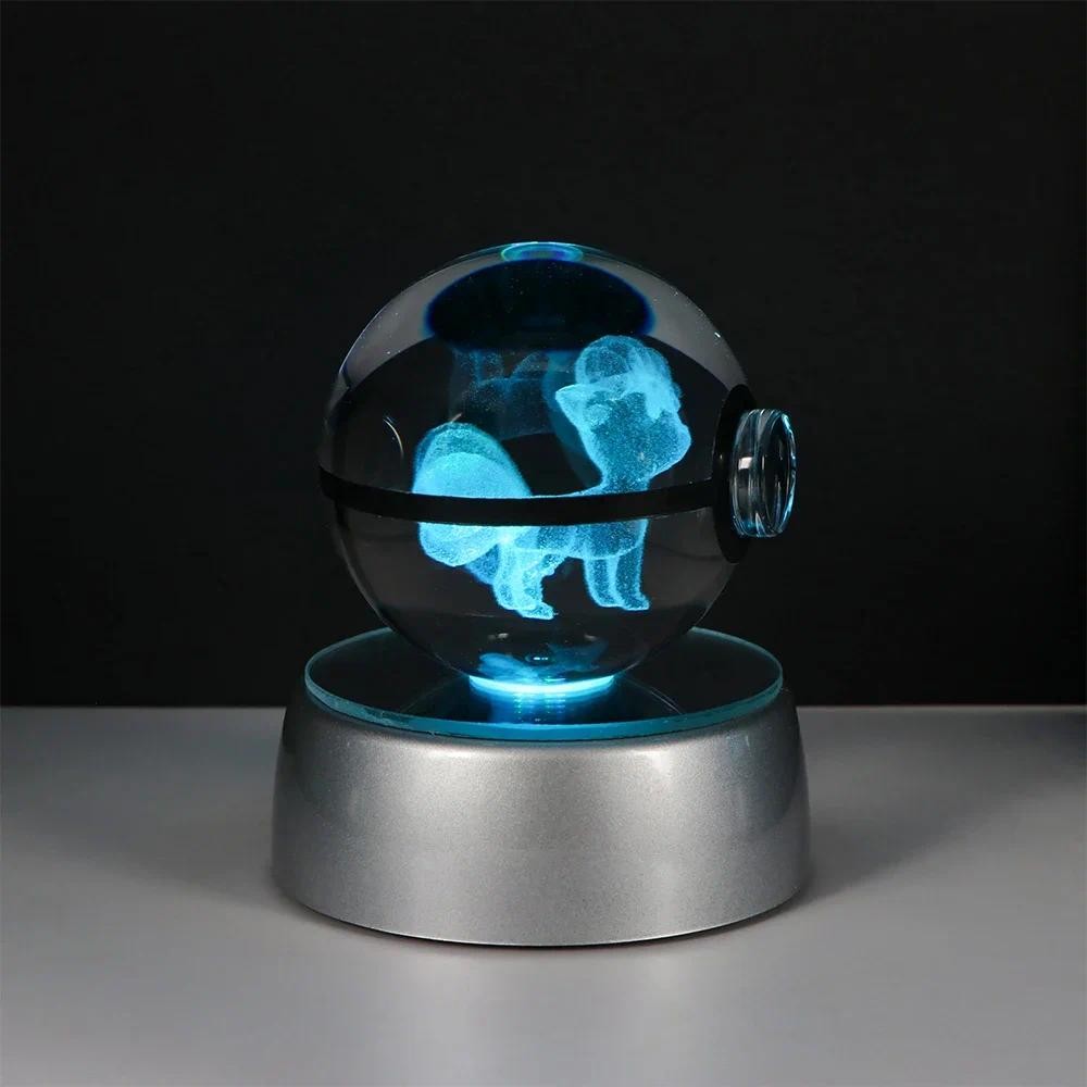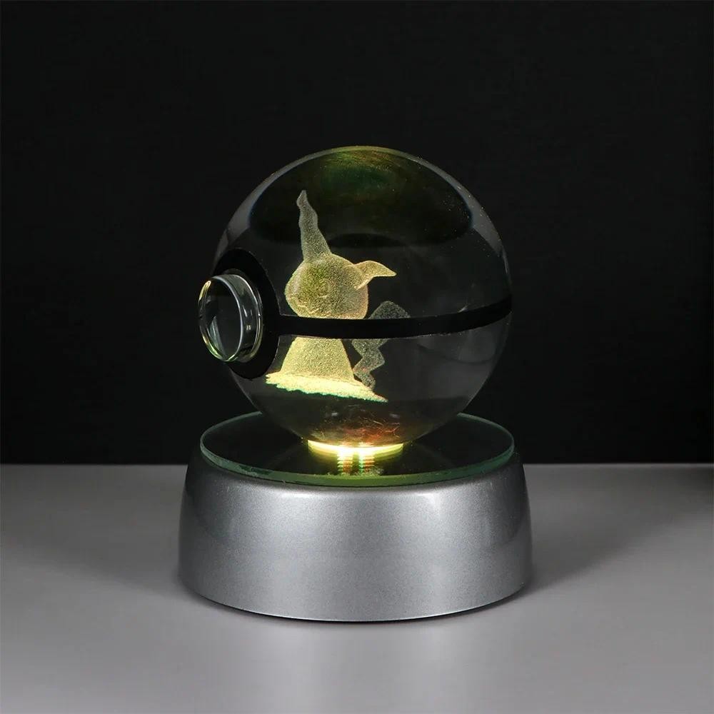 Pokemon Crystal Ball 3D Pikachu Gengar Mew Mewtwo Lamp Base Pokeball Crystal Pokemon Glass Ball Figure Night Light Birthday Gift