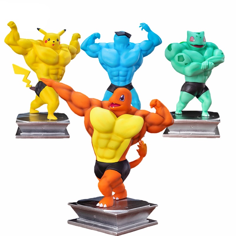 Pokemon Pikachu Anime Figure Cosplay Muscle Man Funny Creative Model Pvc Action Gk Figurine Collection Bodybuilding Toys Gift