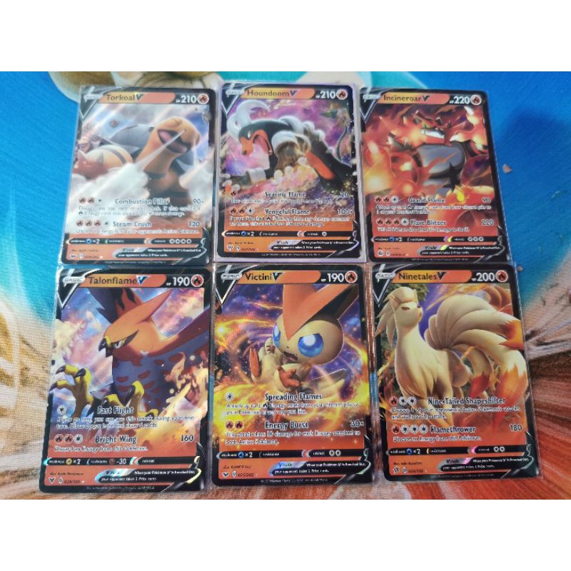 Pokemon TCG Pokemon V Trading Card (Fire Type) [Ninetales, Victini, Talonflame, Incineroar, Houndoom, Torkoal]