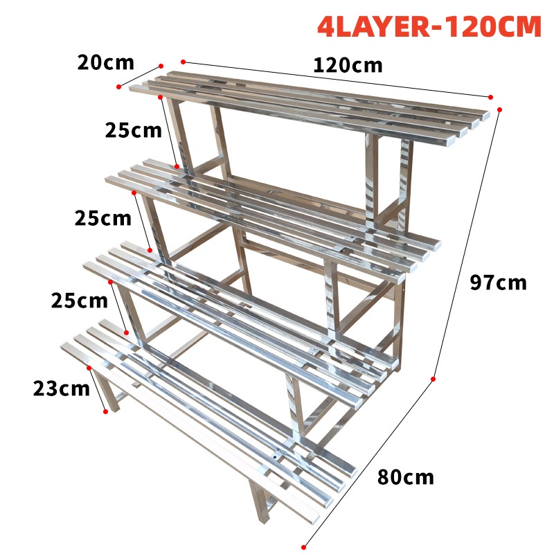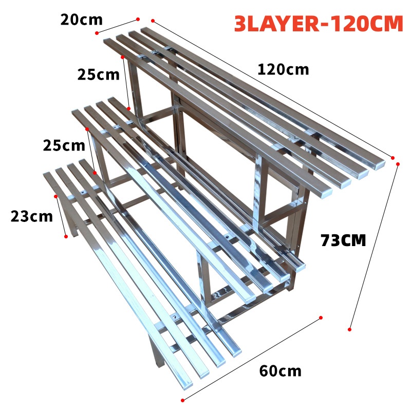 Pokok Bunga Bertingkat Pasu Rak Rack Stainless Steel Stand Flower Stand Flower Pot Stand Garden Rack Multi Layer FUR001