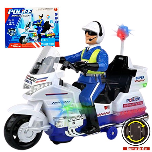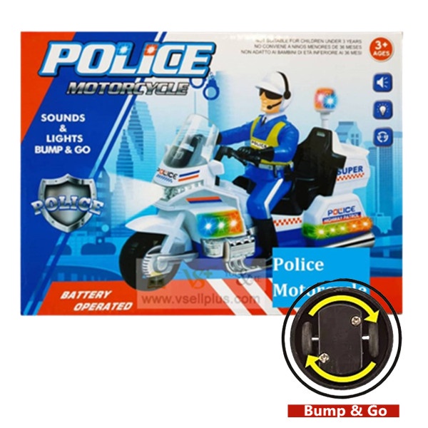 Police Motorcycle Toys with Sounds & Lights Bump & Go