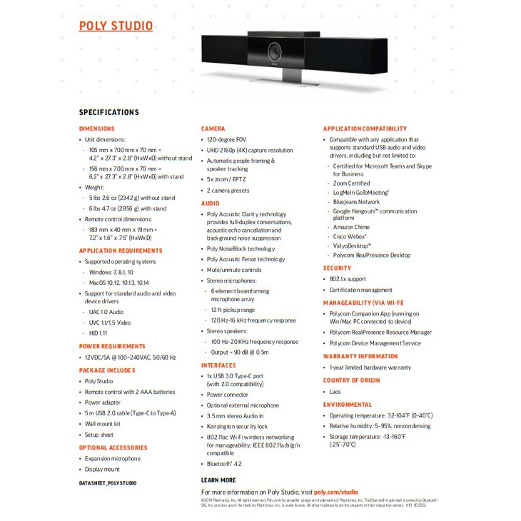 Polycom Poly Studio + Sharp 65-inch Touch Interactive Whiteboard Monitor Package