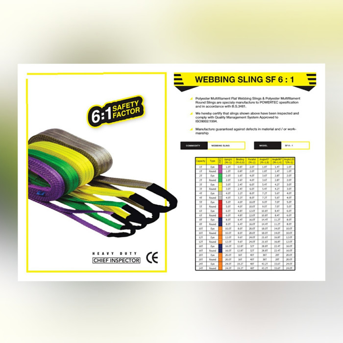Polyester Webbing Sling POWERTEC Lifting Rope 3 Ton x 8 Meters (SF 6:1)